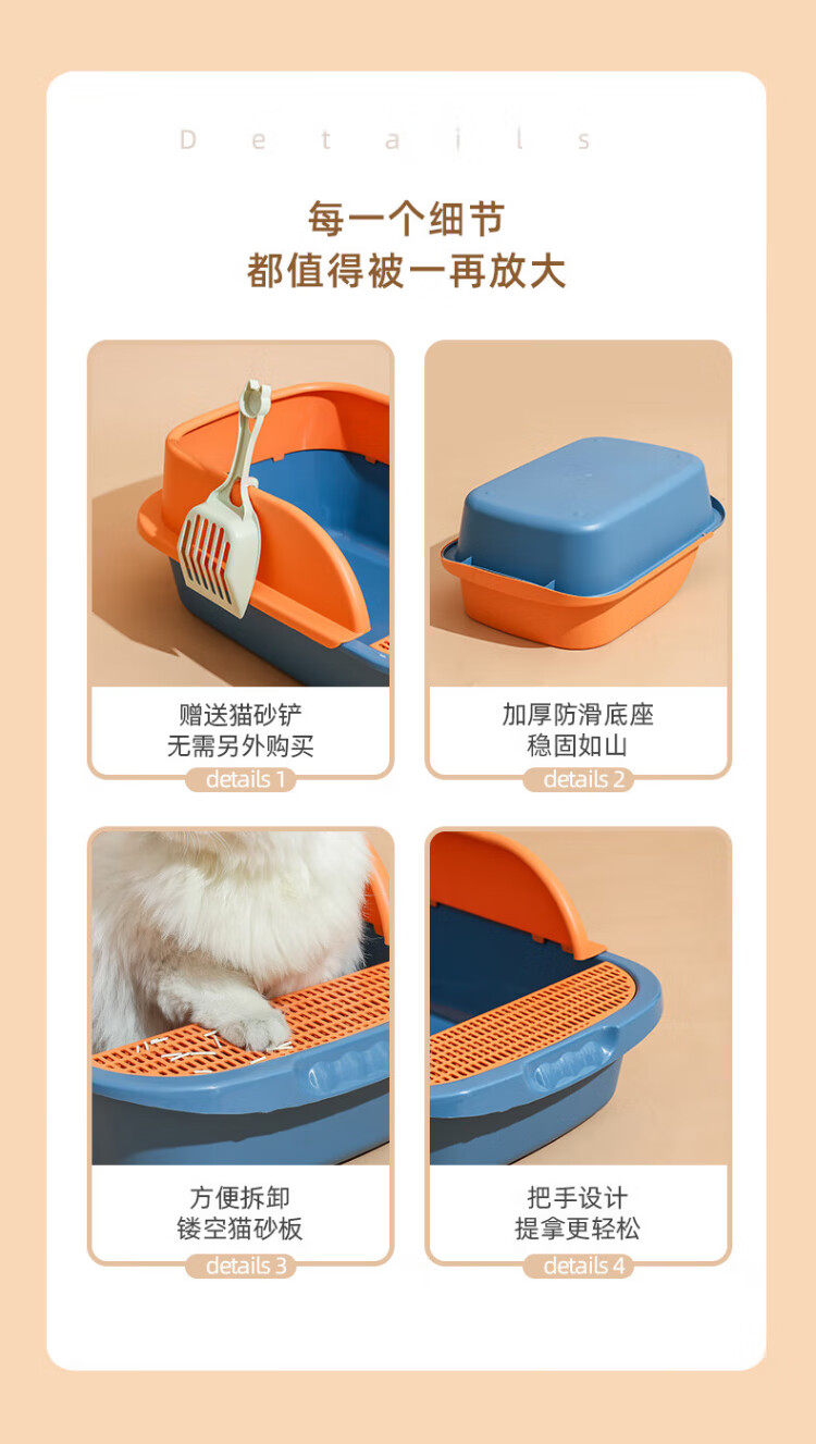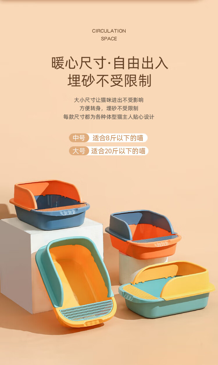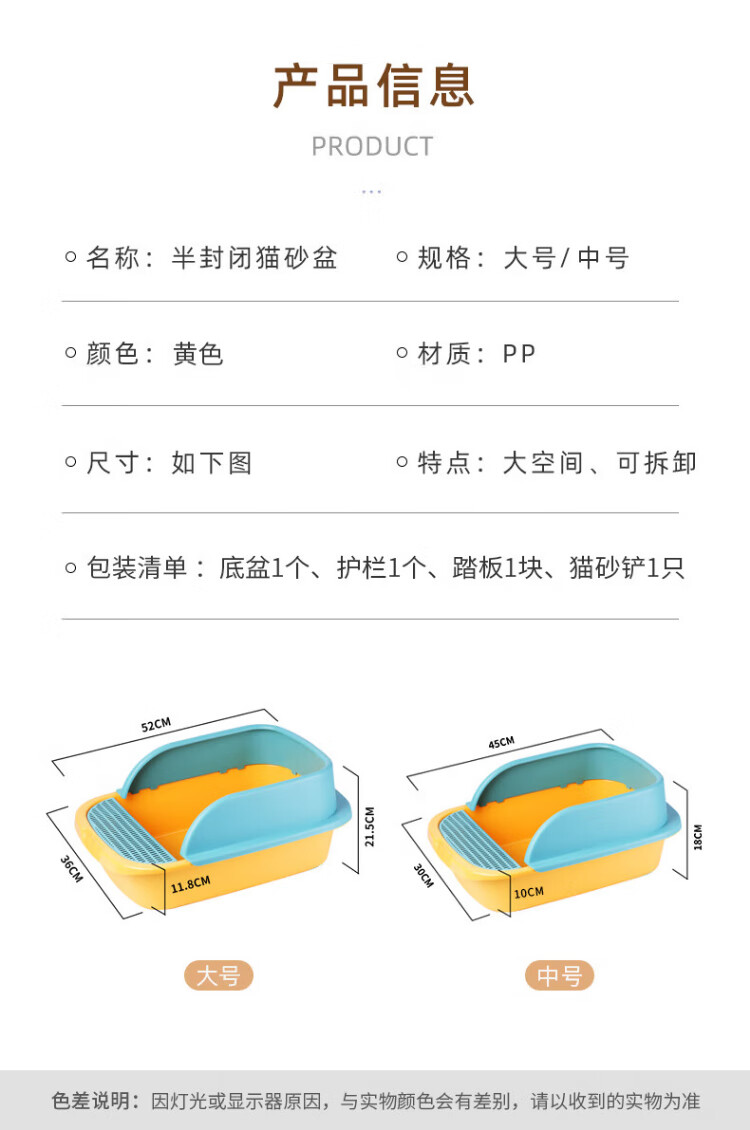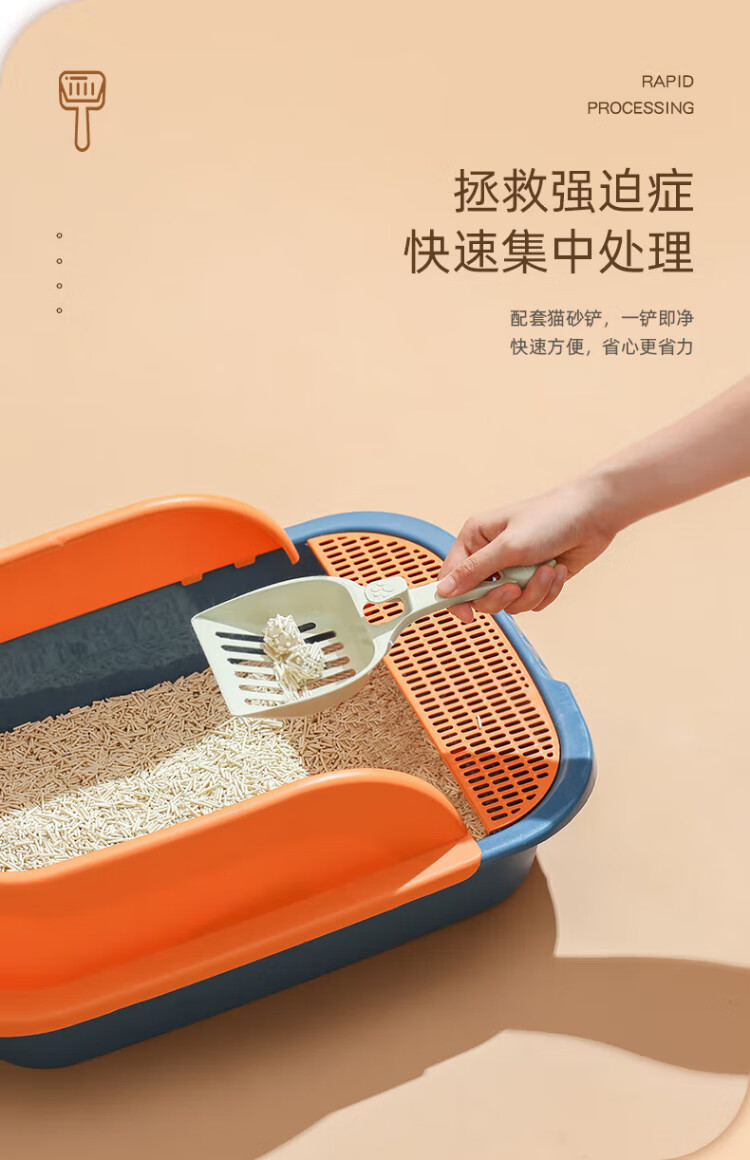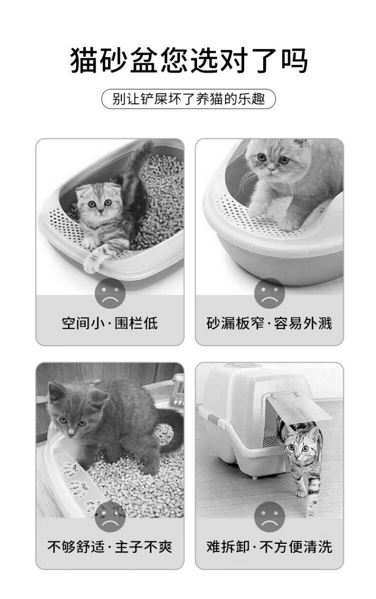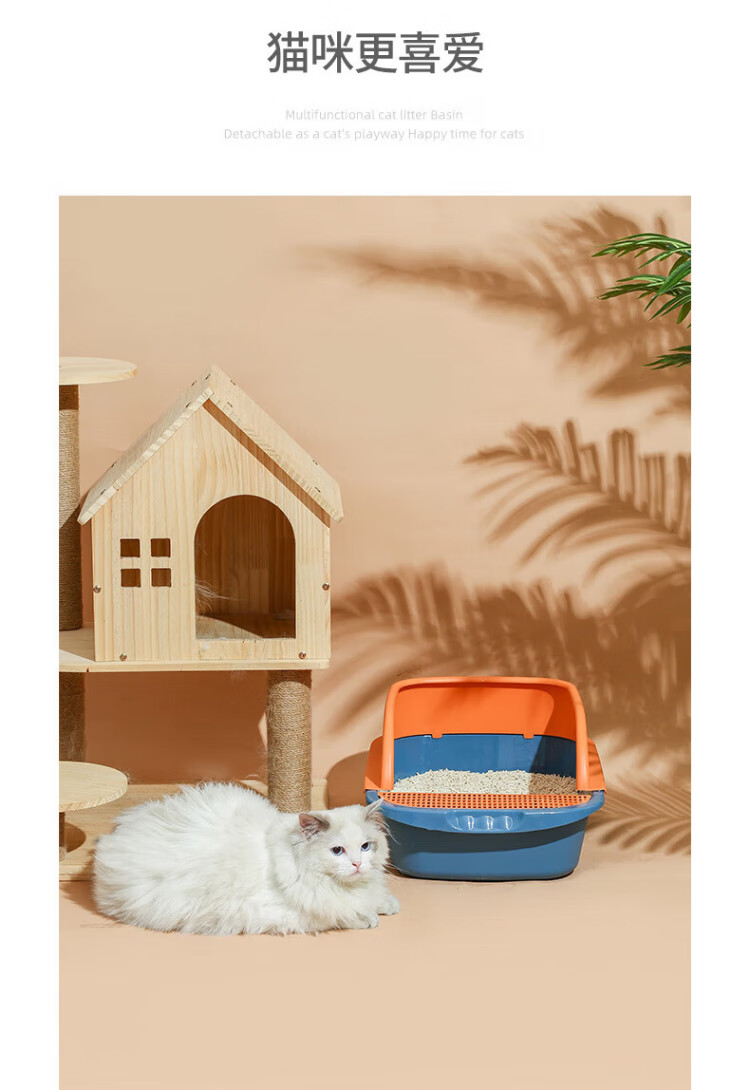 Wang Yejun cat litter box semi-enclosed top-in cat toilet to prevent splashing kitten adult cat cat litter box cat litter box with cat litter shovel medium size