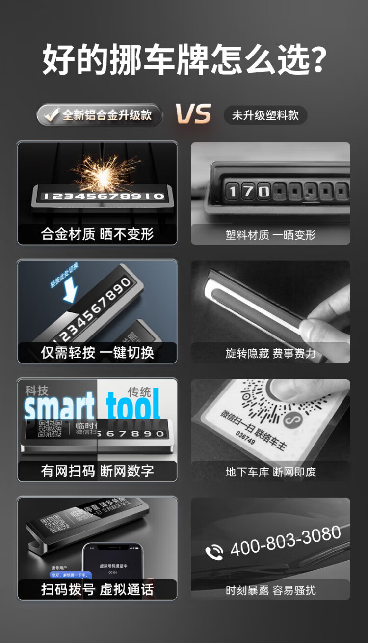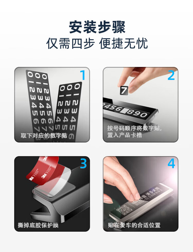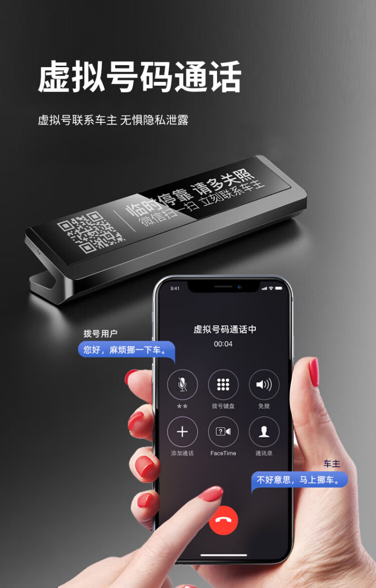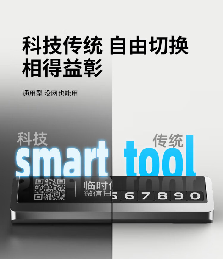 Shanshan parking sign, moving car, phone number plate, scanning code, moving car, luminous digital QR code, temporary parking sign