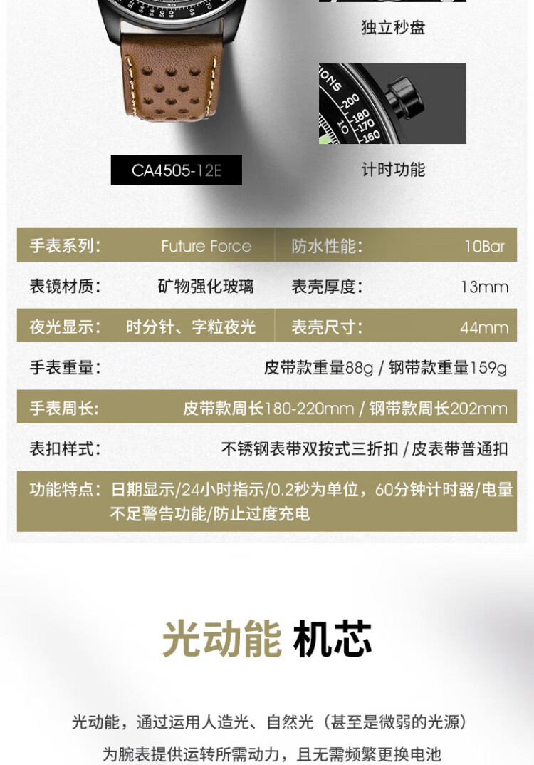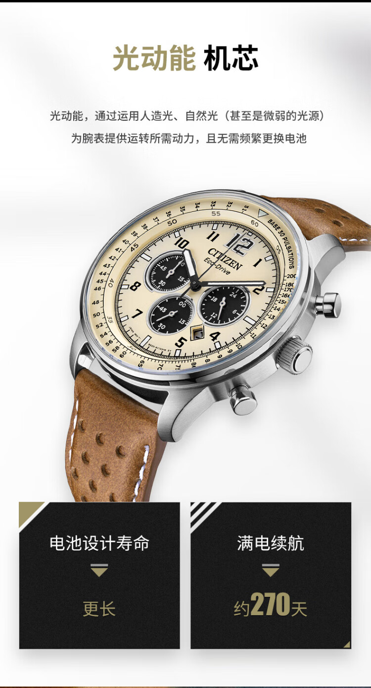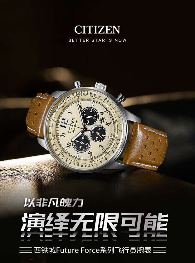 CITIZEN watch men's Japanese and Korean watch FF series light-powered three-eye disc belt business gift CA4500-16X