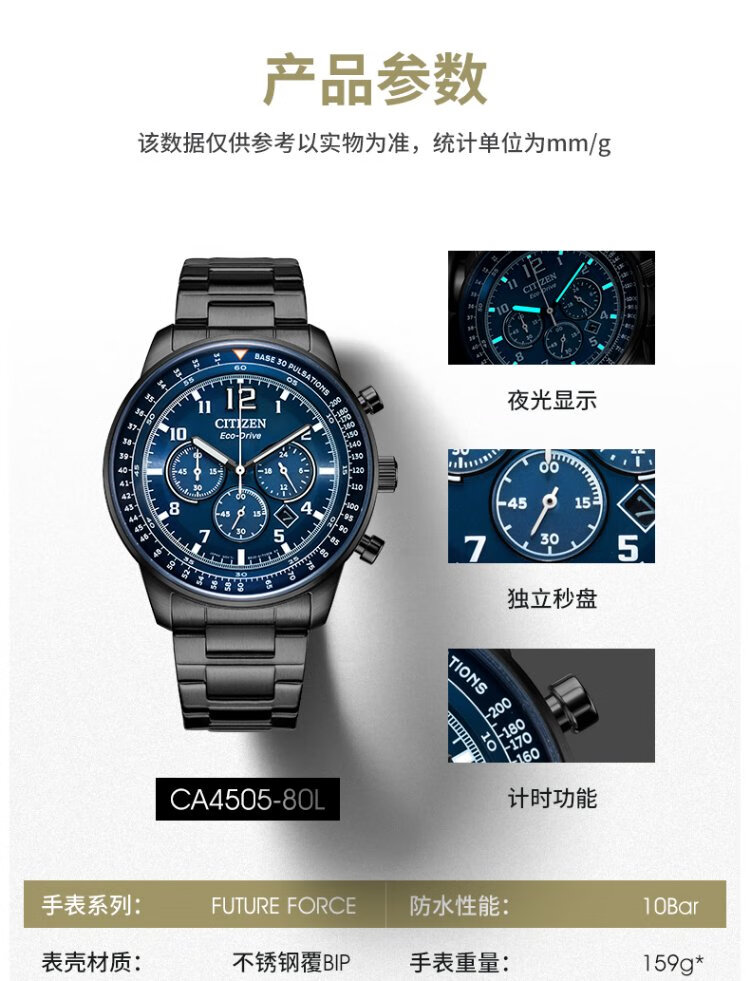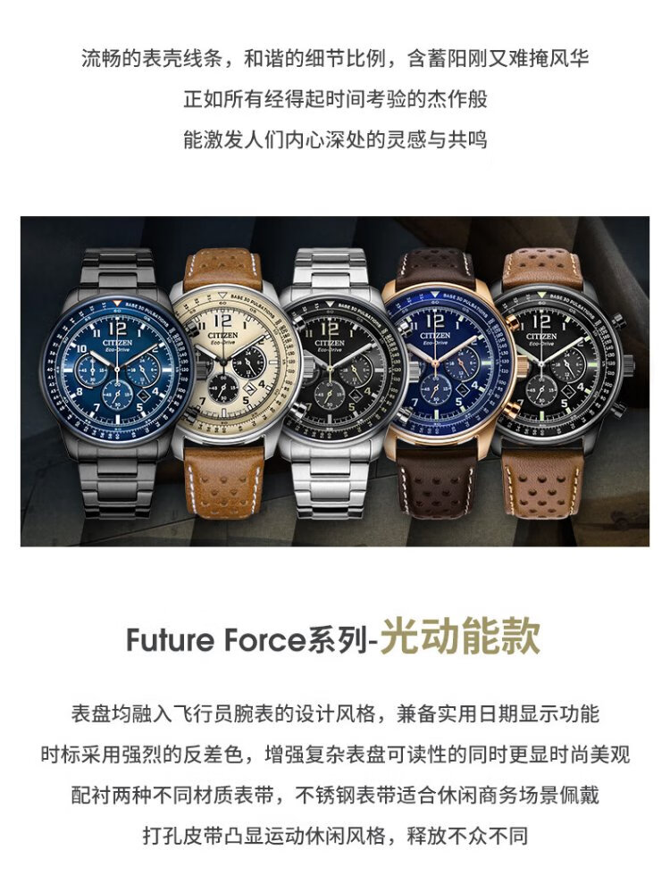 CITIZEN watch men's Japanese and Korean watch FF series light kinetic energy day display plate steel belt business Christmas gift CA4505-80L