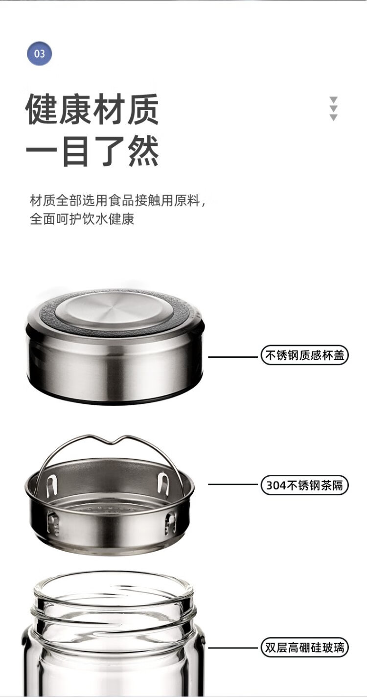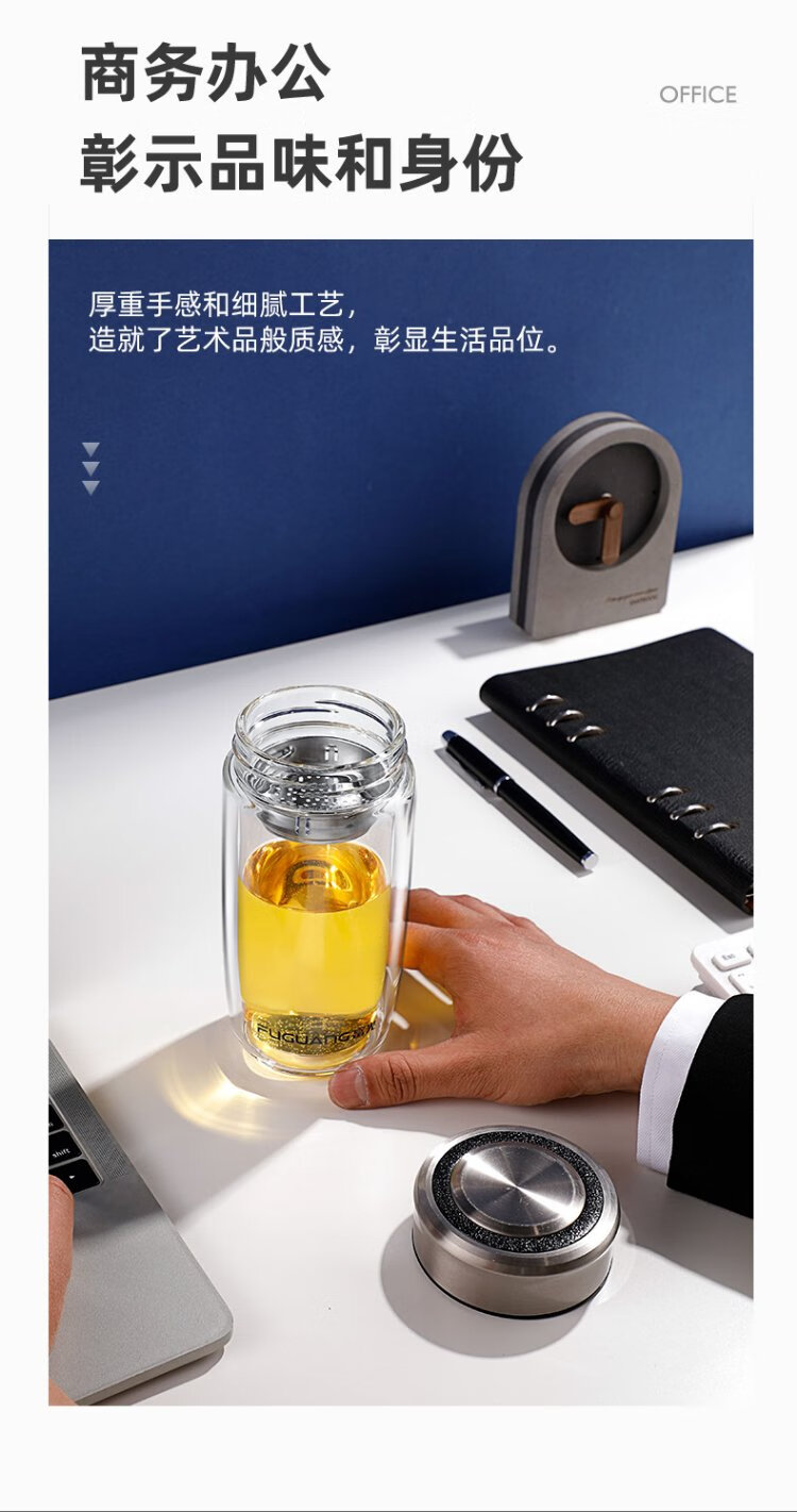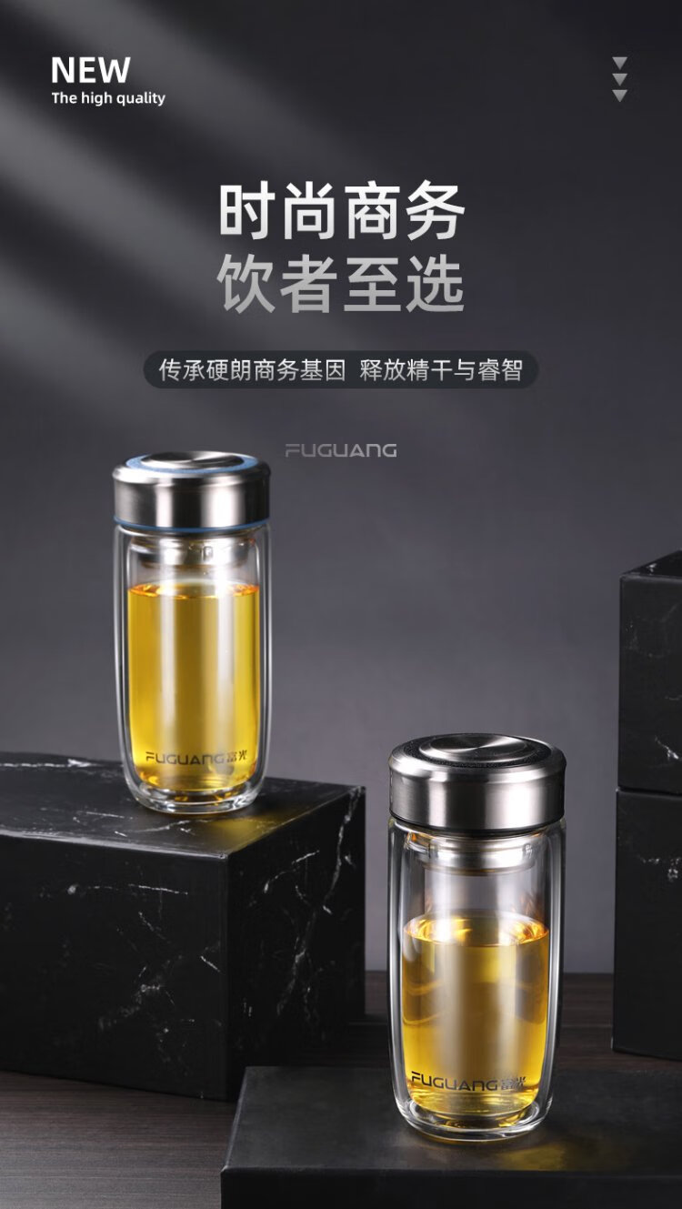 Fuguang glass double layer high borosilicate glass water cup with tea separator tea and water separation car tea cup for men 400ml