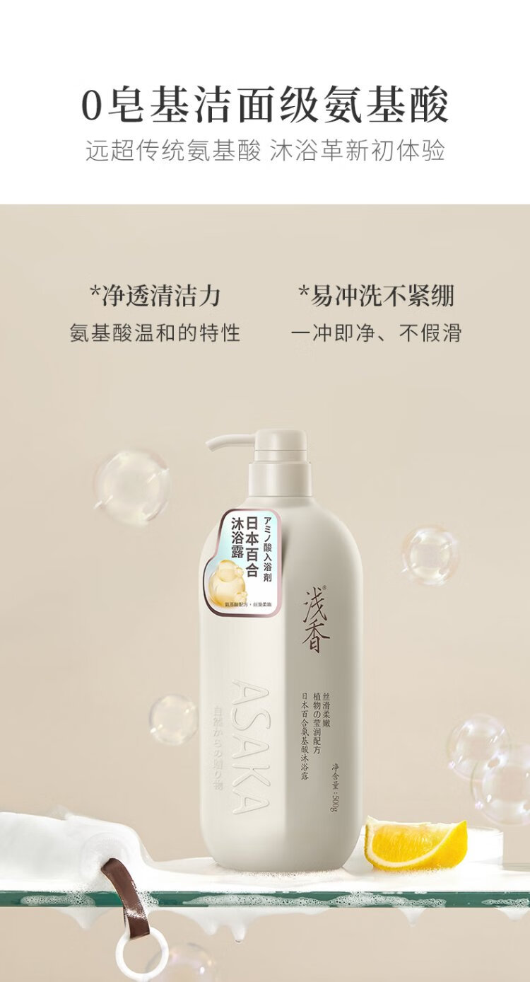 ASAKA Shower Gel Amino Acid Shower Lotion Men's and Women's Perfume Fragrance Long-lasting Fragrance Bath Water 750g Remove Odor