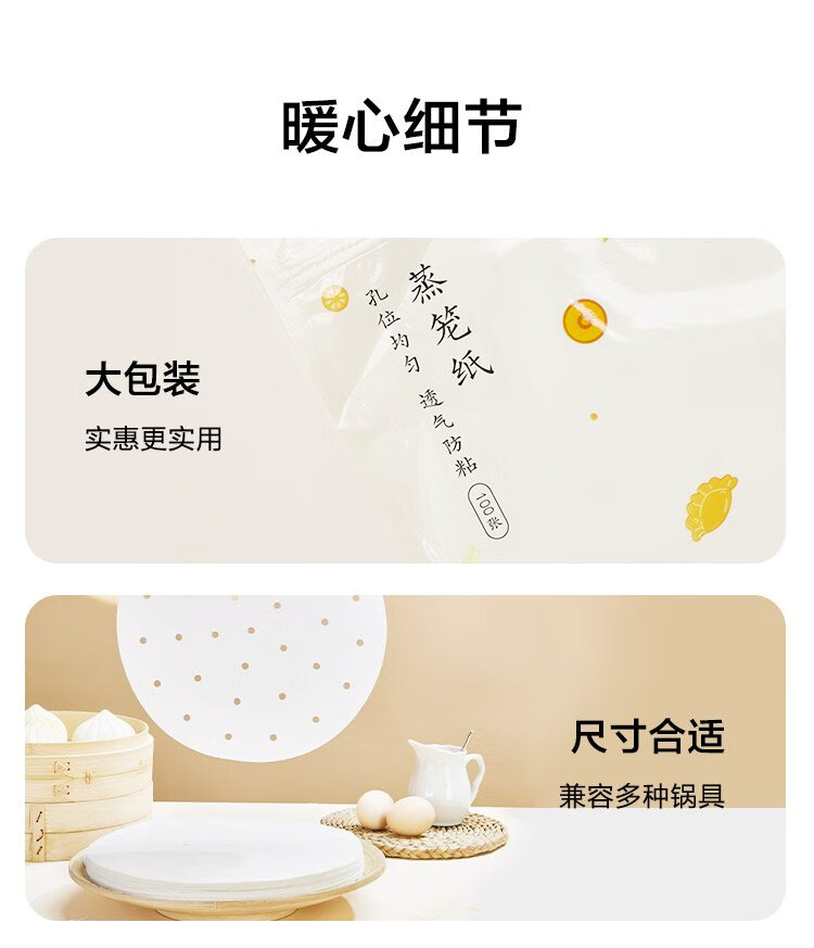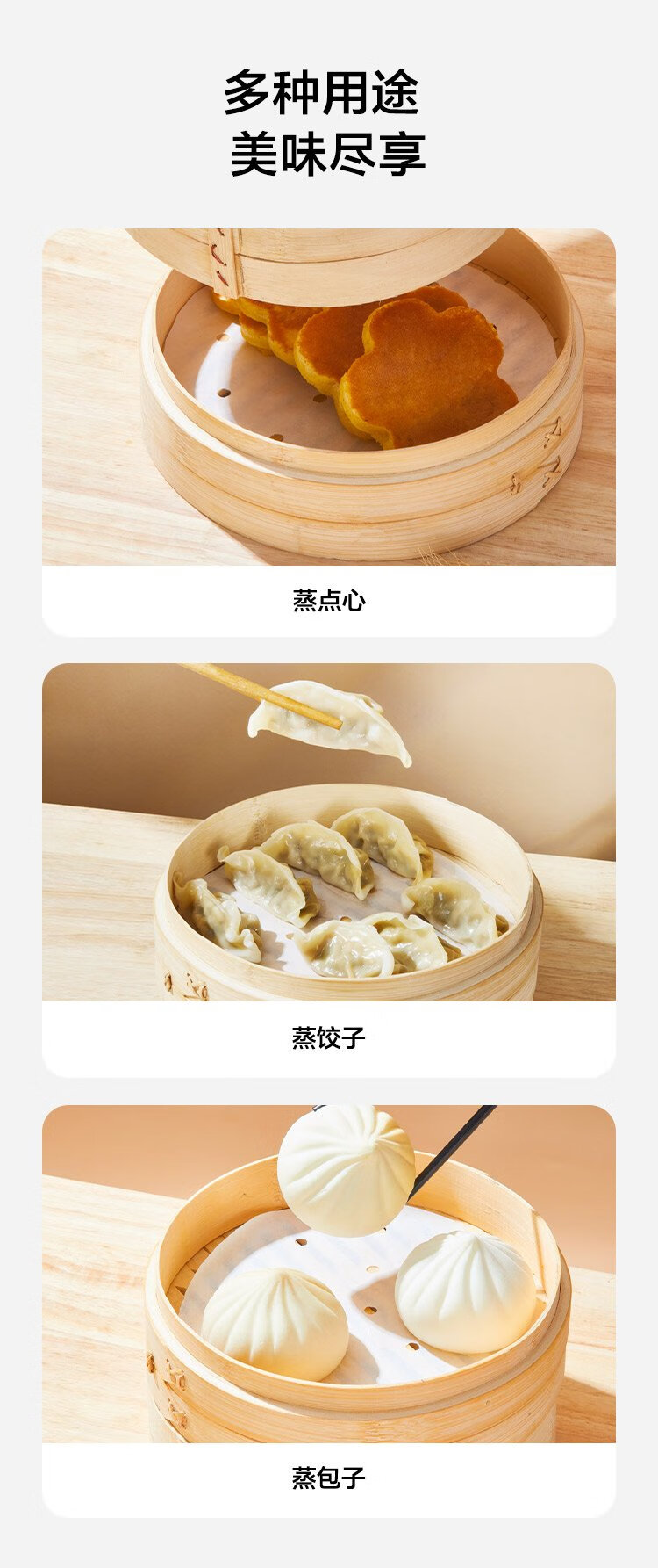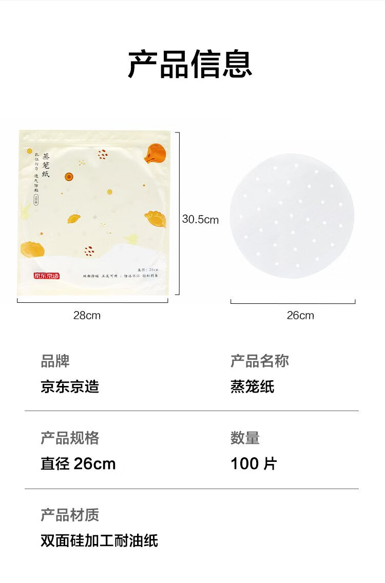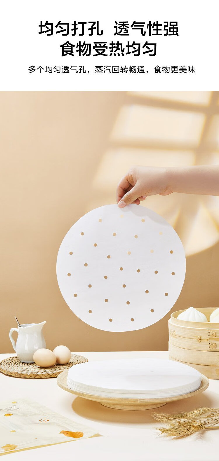 Made in Tokyo, steamer paper, disposable food-grade round bun steamer paper, 26cm in diameter, 100 sheets