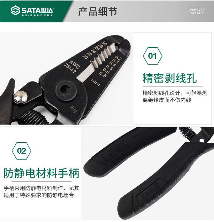 SATA 75141 Anti-static handle wire stripper 5 (0.8-2.6MM)