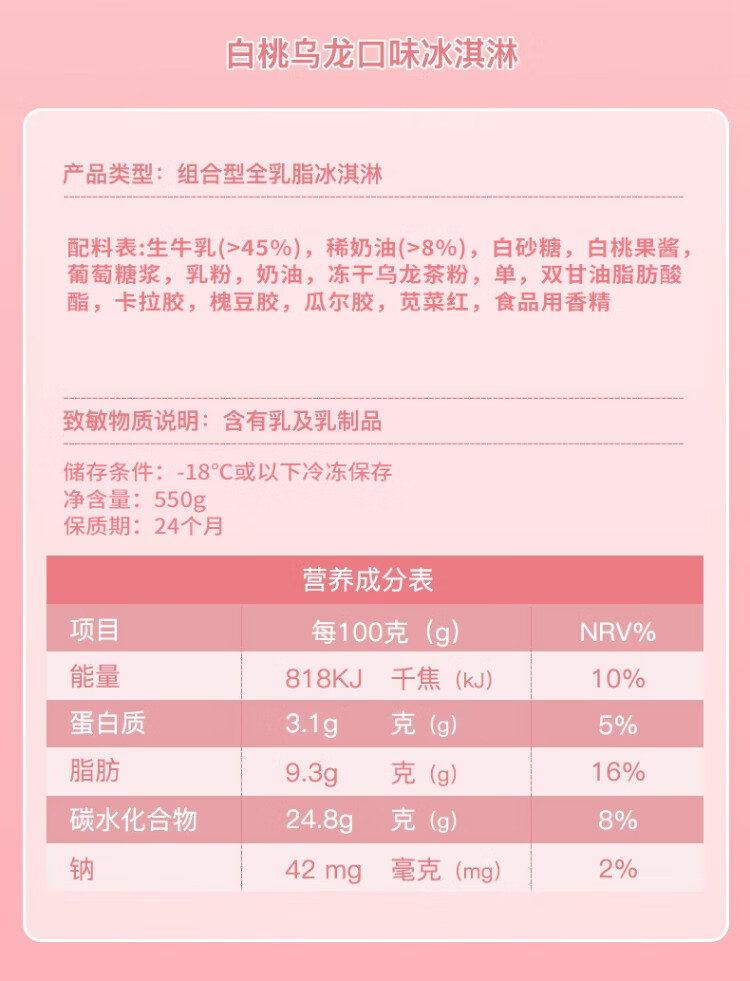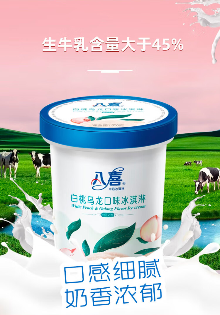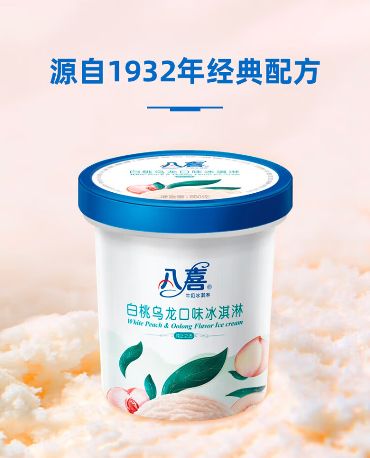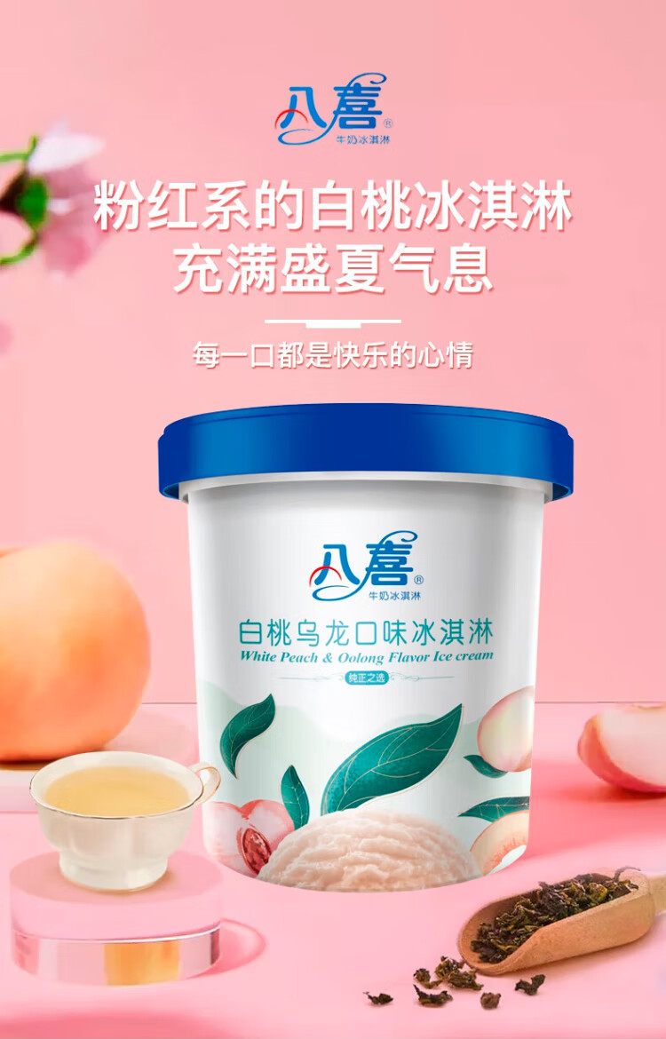 Baxi Ice Cream White Peach Oolong Flavor 550g*1 Bucket Family Pack Raw Milk Ice Cream Bucket