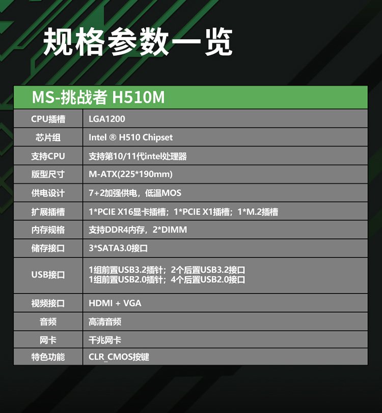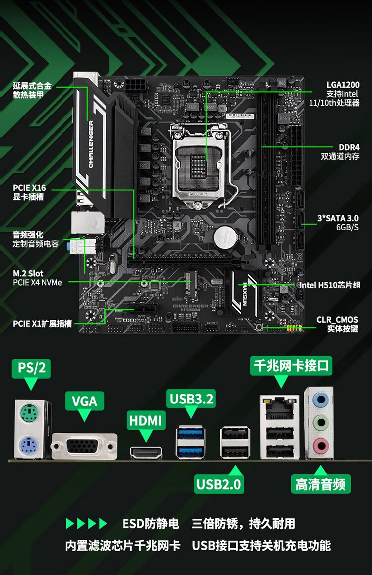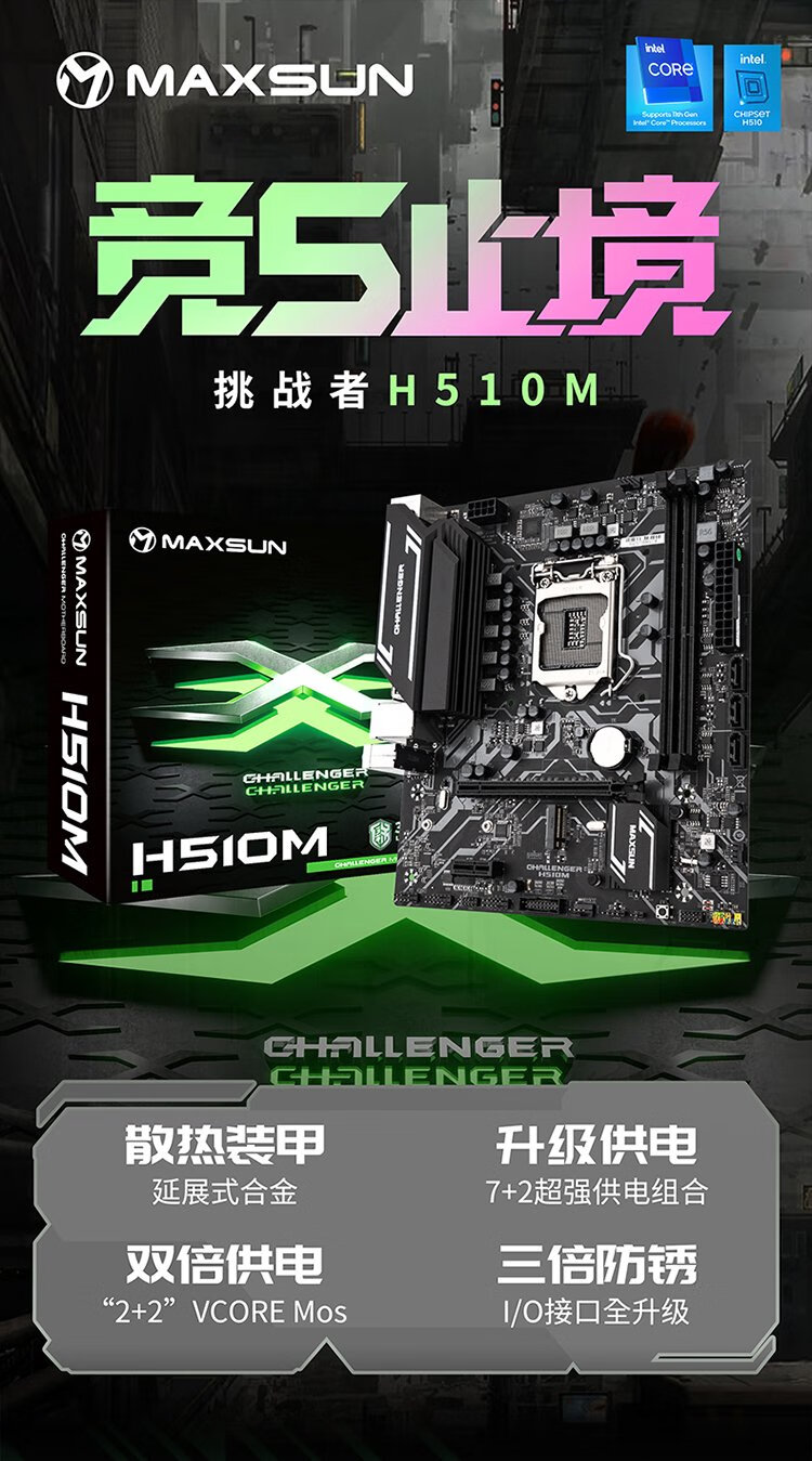 MAXSUN MS-Challenger H510M computer motherboard supports CPU 10400F/11400F/11700 (INTEL H510/LGA 1200)