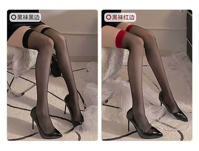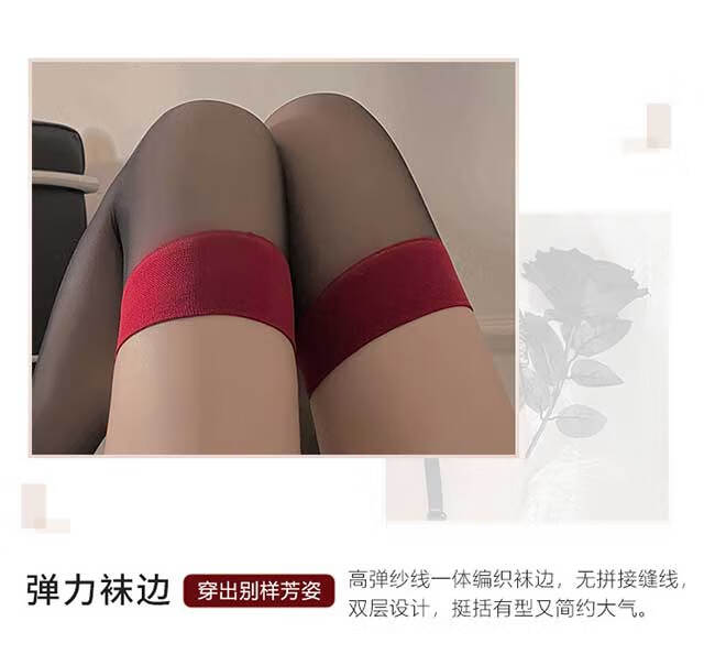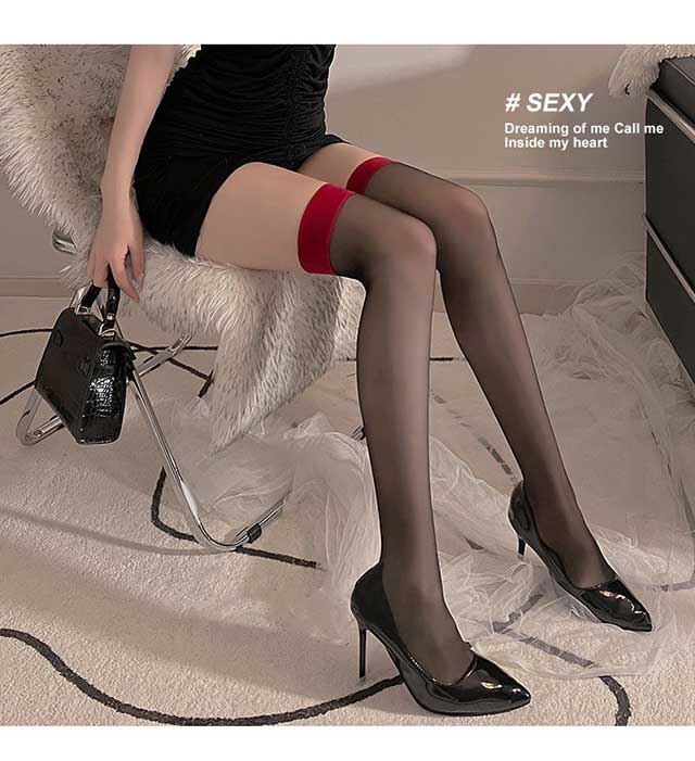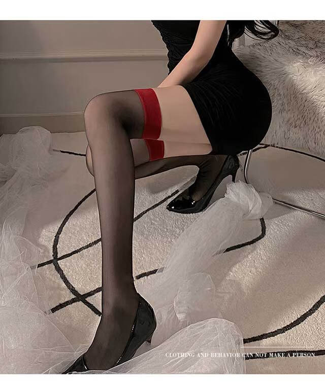 Чулки Langsha, женские, с красным краем, черный шелк, интернет-красный, чулки с длинной трубкой выше колена, ультратонкие чулки в стиле чистой похоти, сращенные до бедра