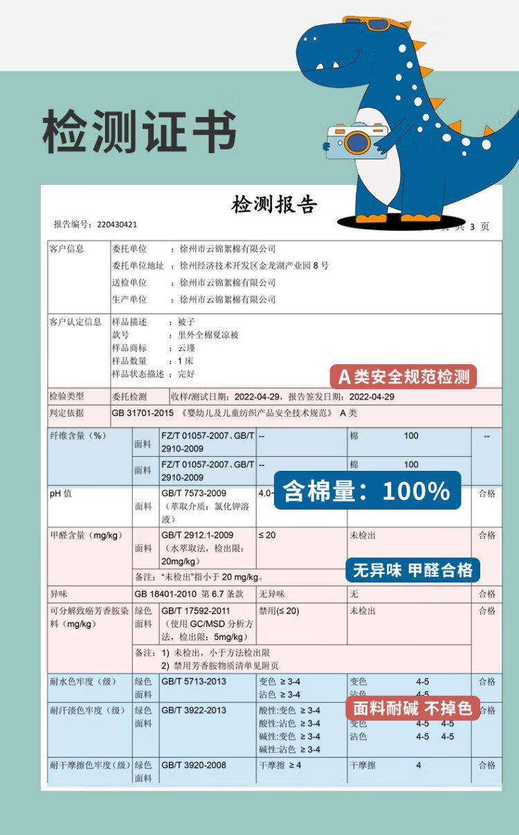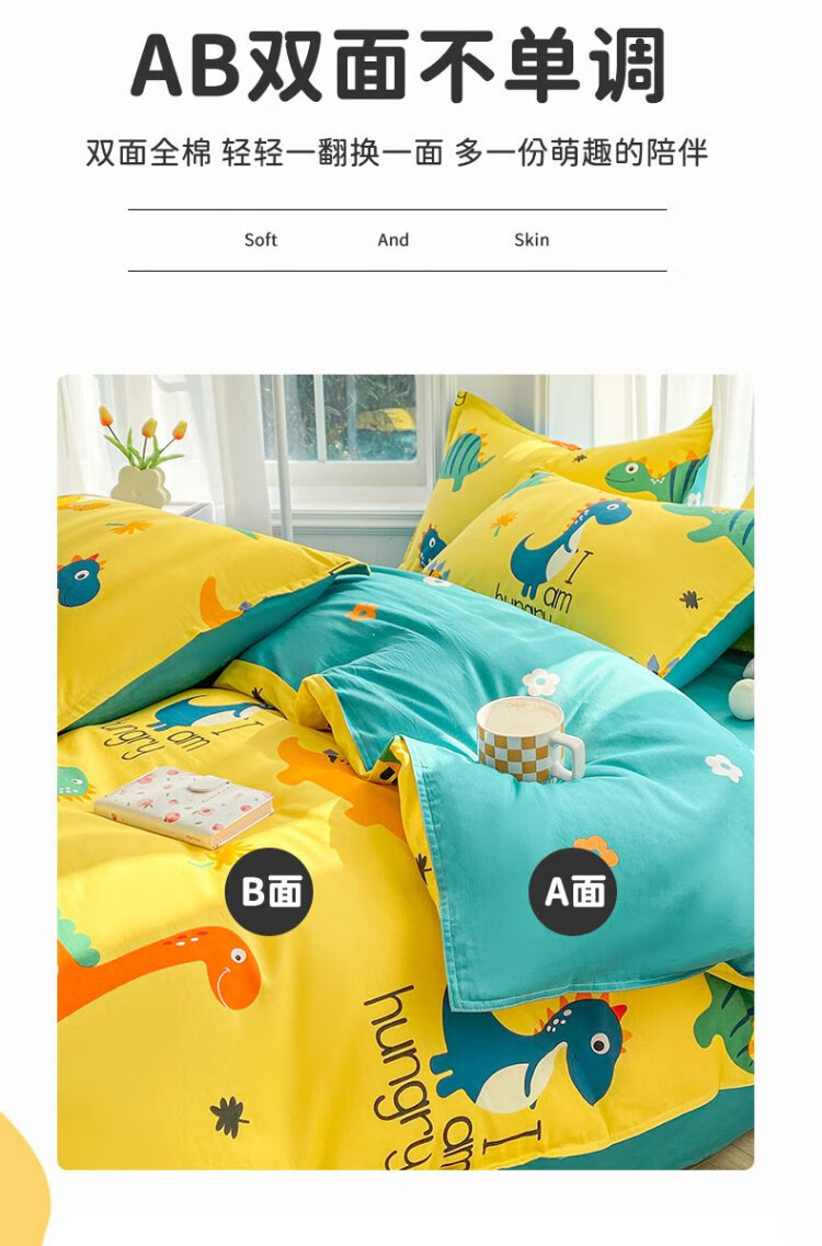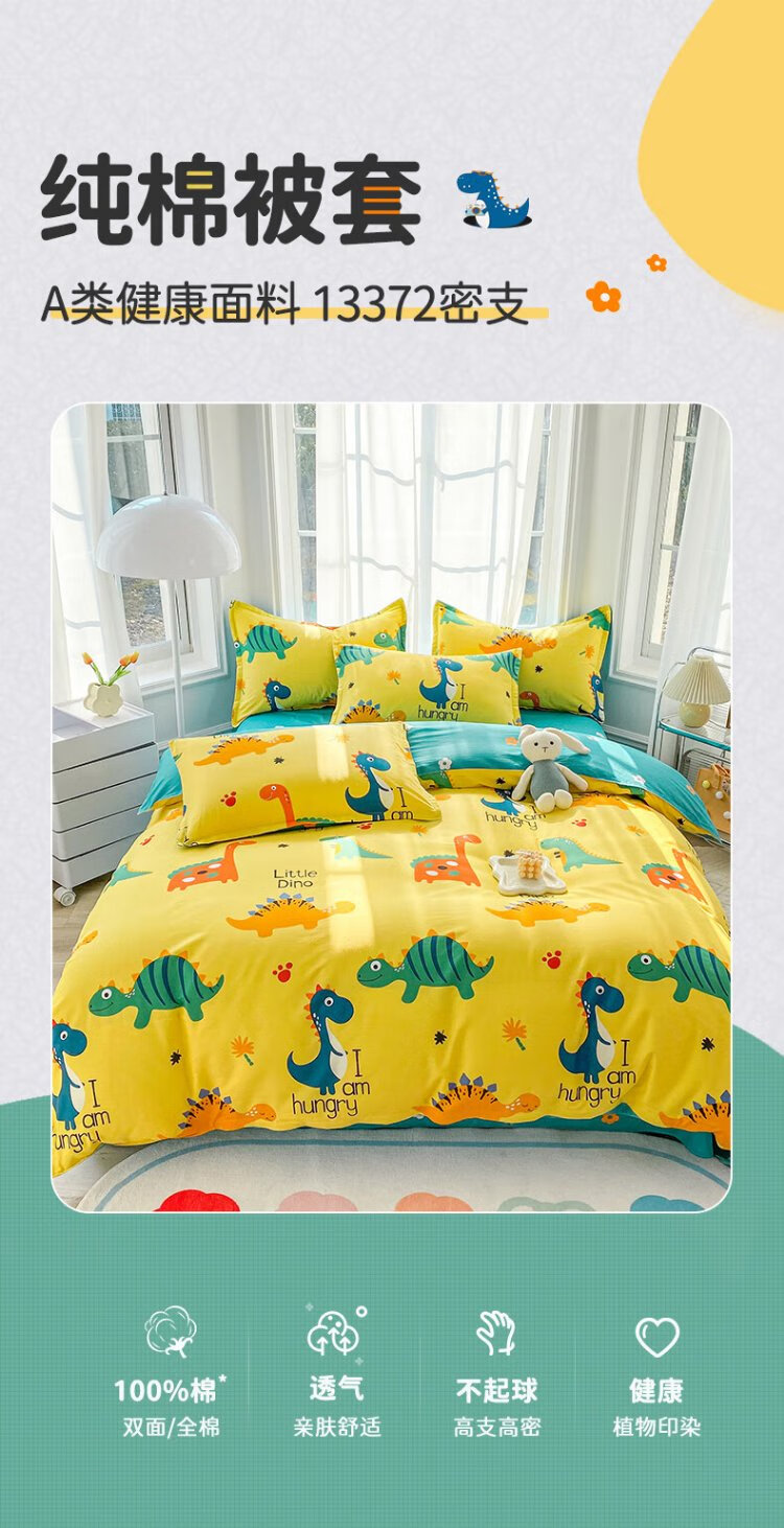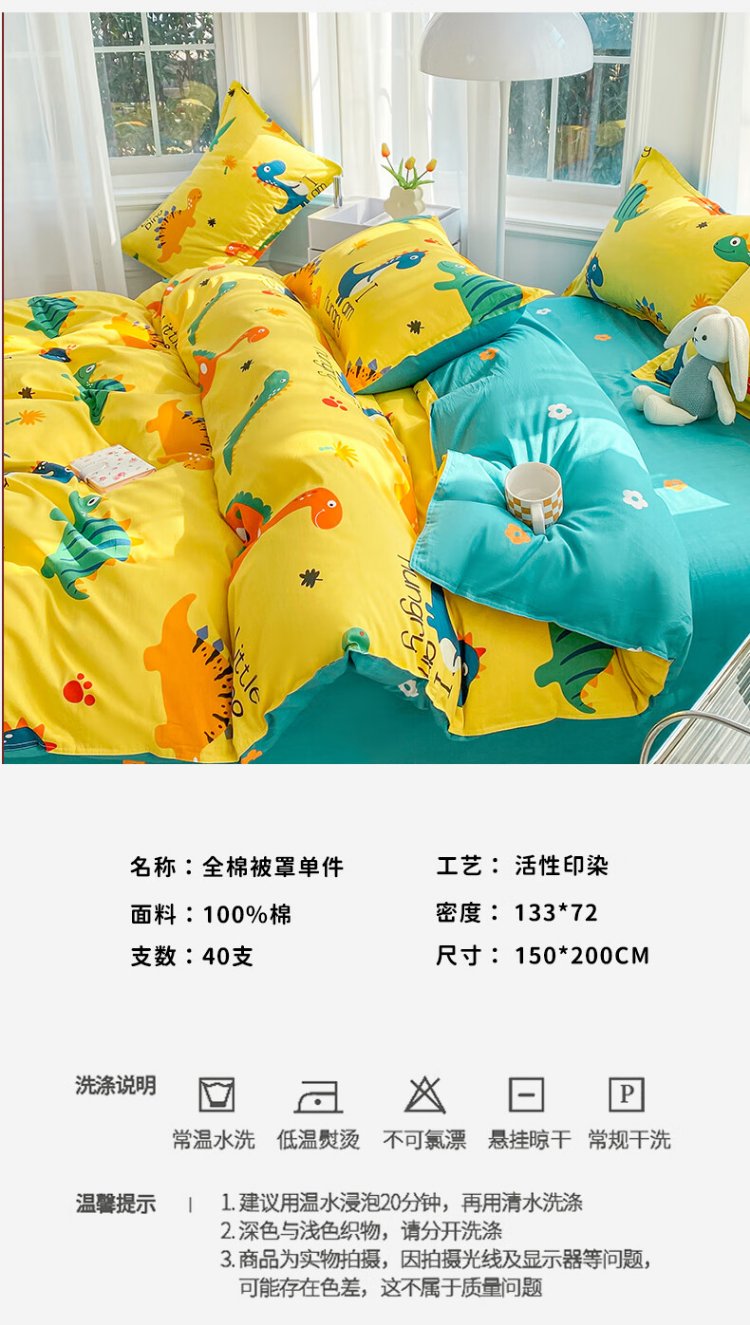 Mengshina Class A pure cotton children's quilt cover single piece cotton kindergarten cartoon quilt cover 150x200cm several dinosaurs