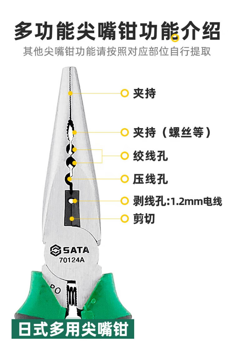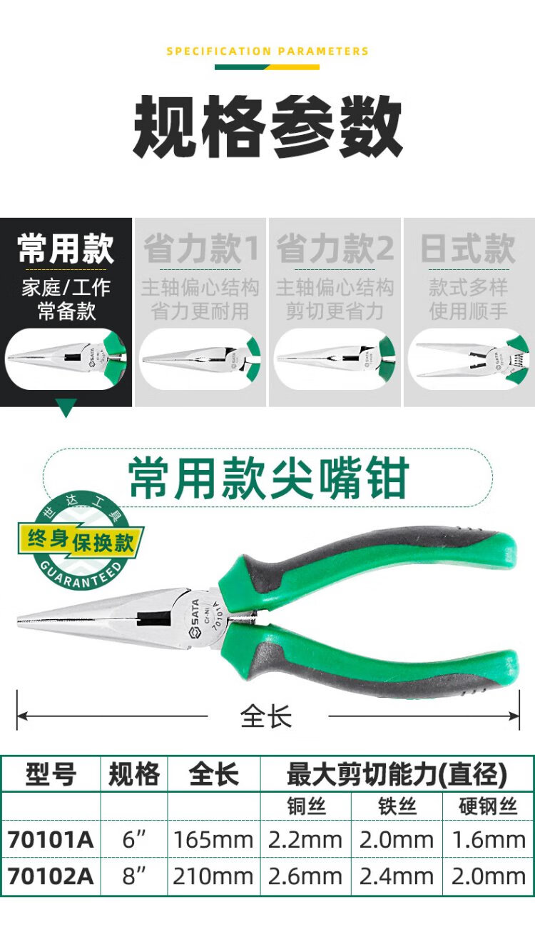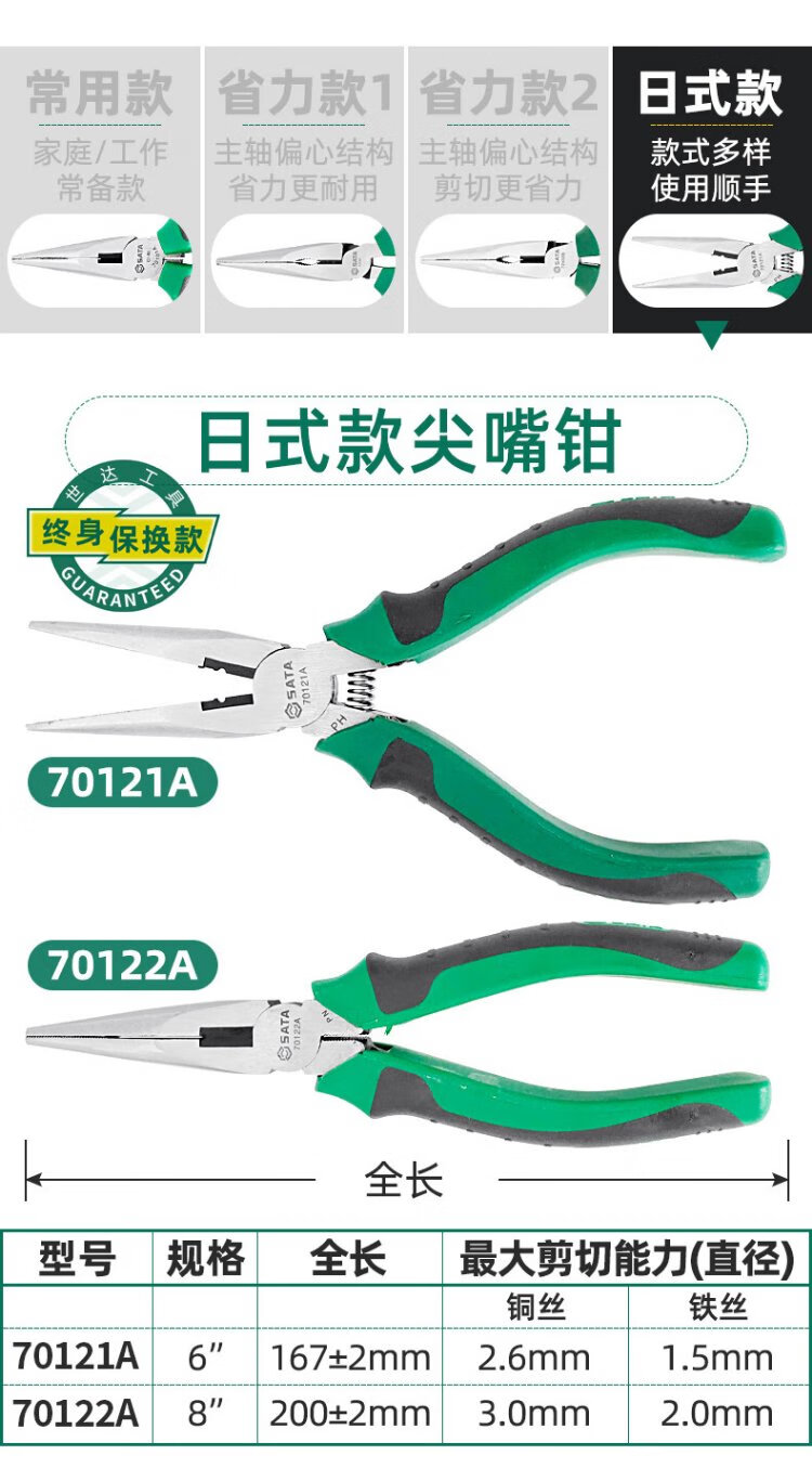 世达(SATA)70121A 专业日式尖嘴钳6