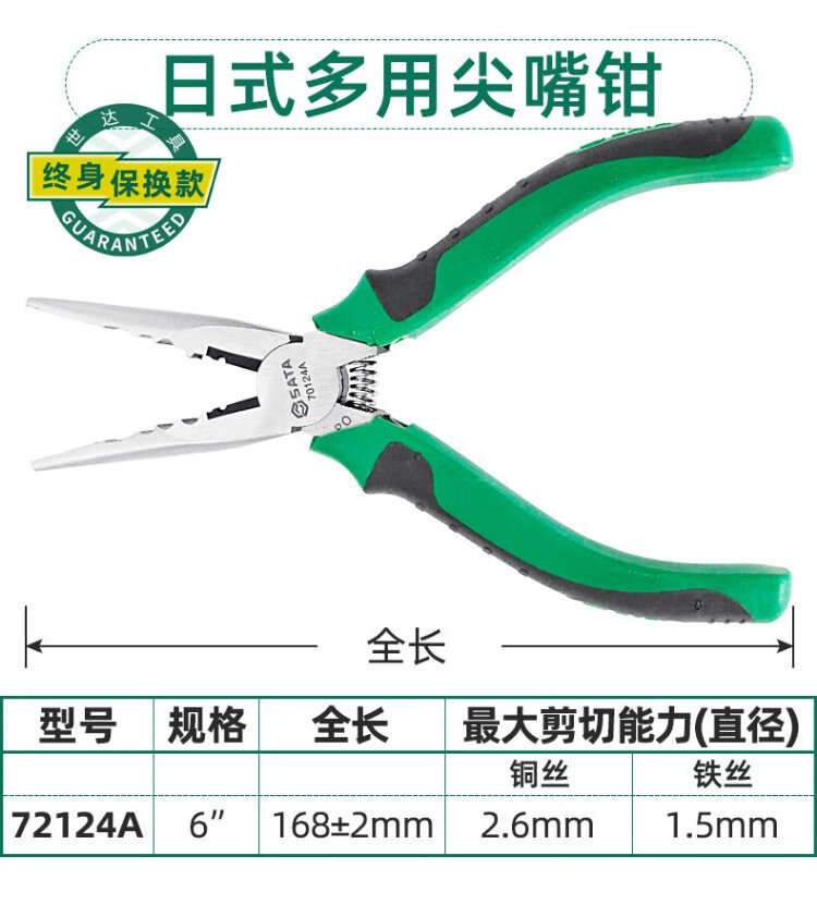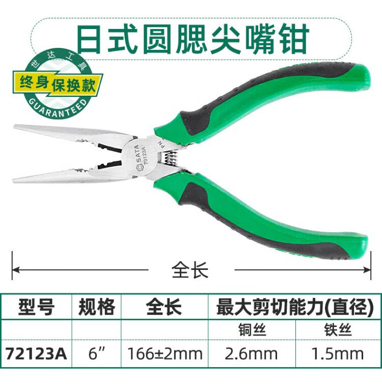 世达(SATA)70121A 专业日式尖嘴钳6"