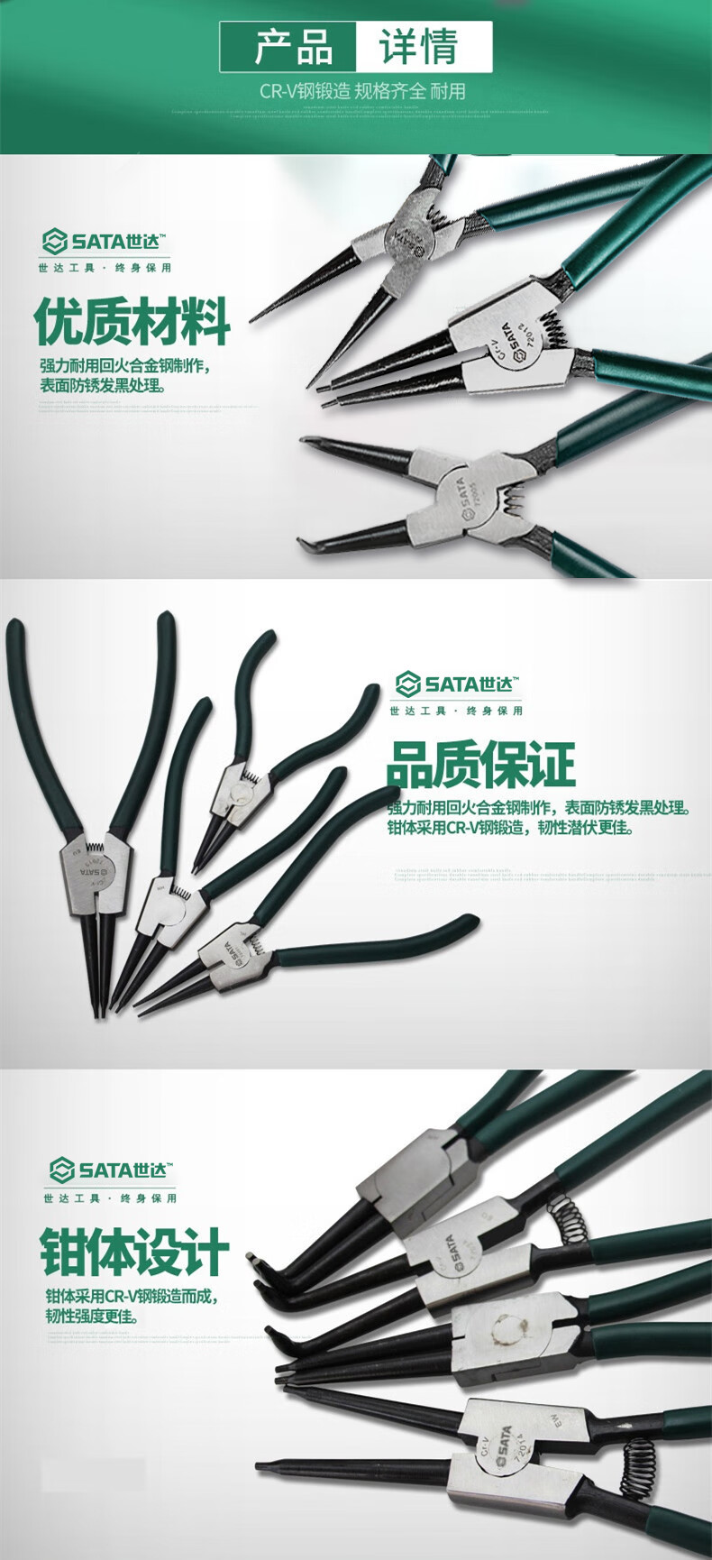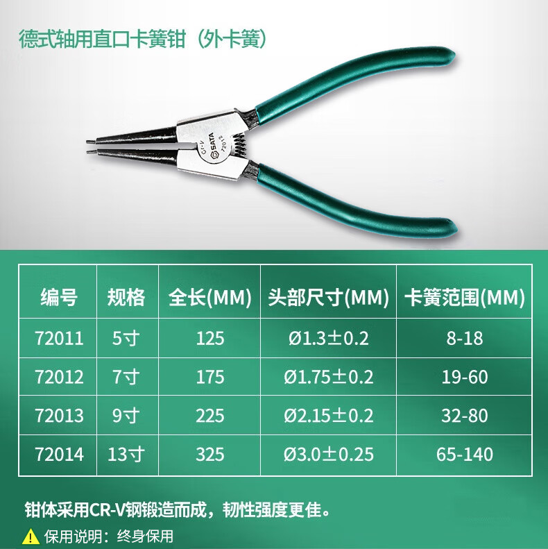 SATA 72012 German style straight circlip pliers for shafts 7