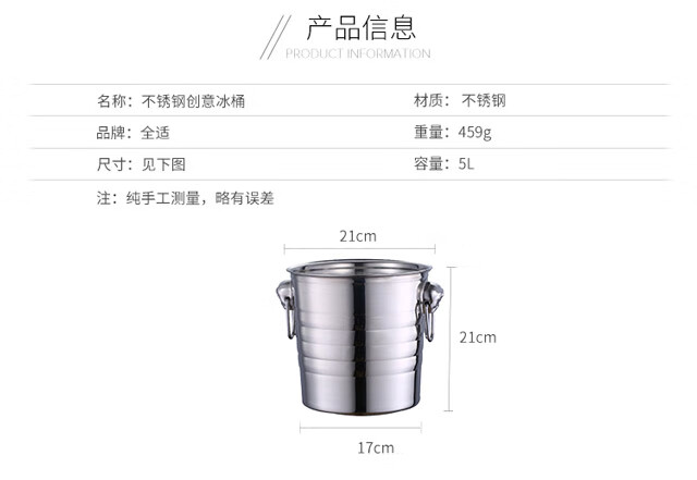 All-purpose stainless steel ice bucket 5L portable ice bucket wine bucket commercial bar ice bucket storage ice bucket beer champagne ice bottle