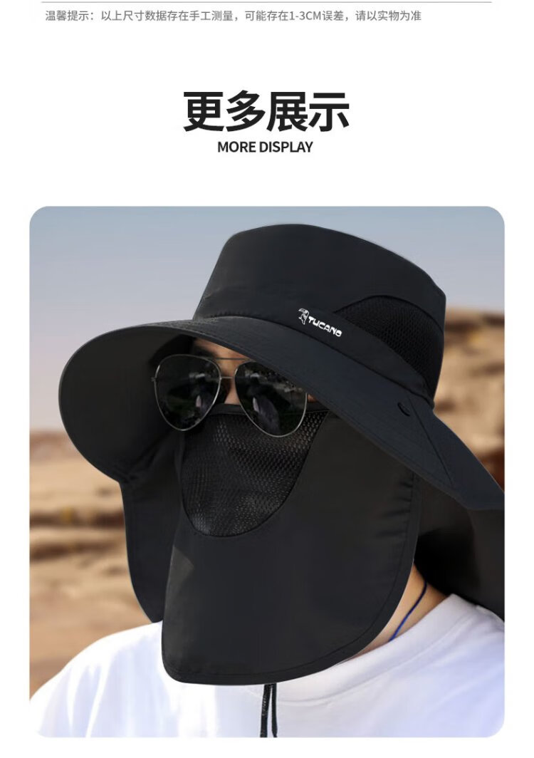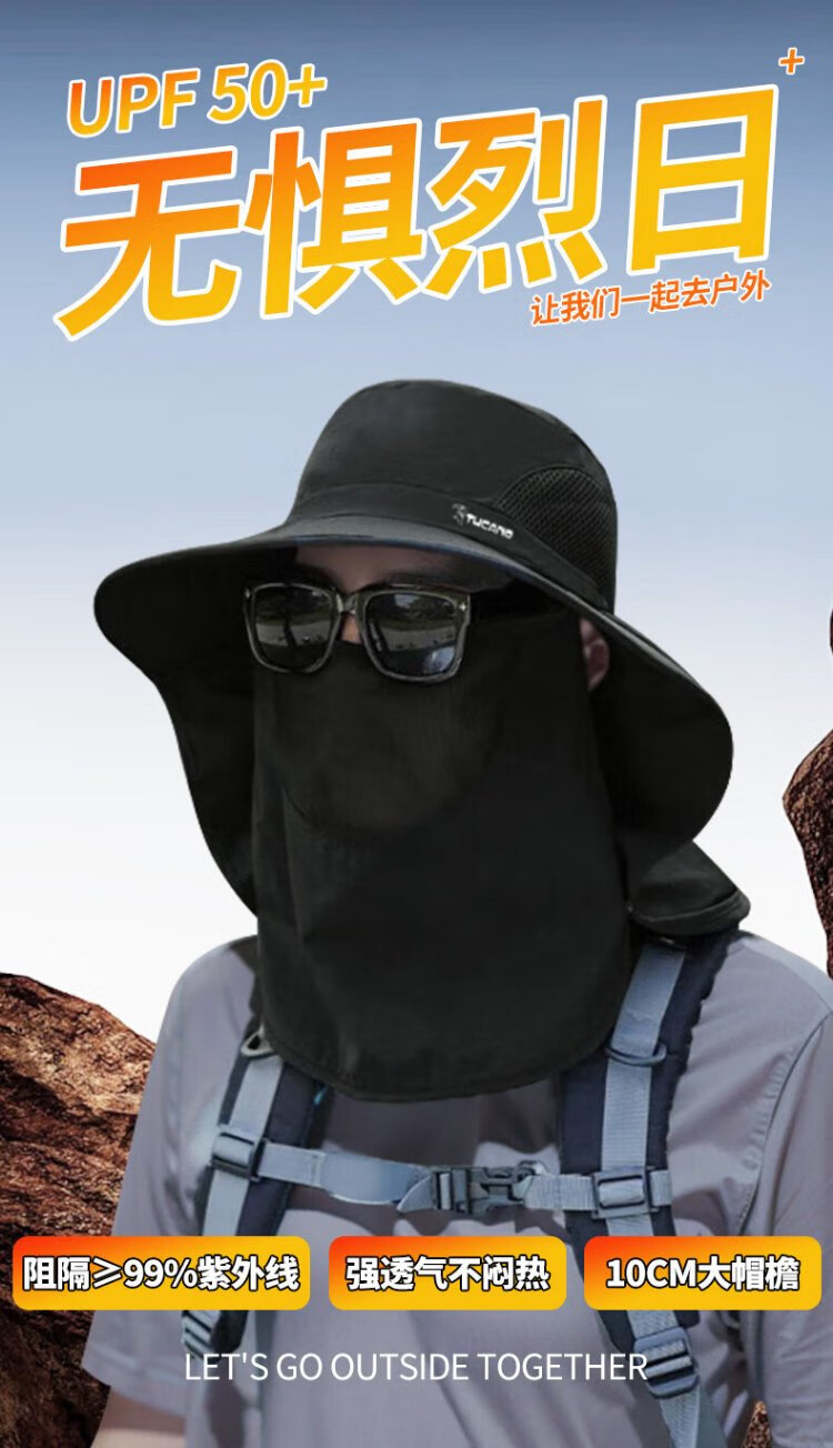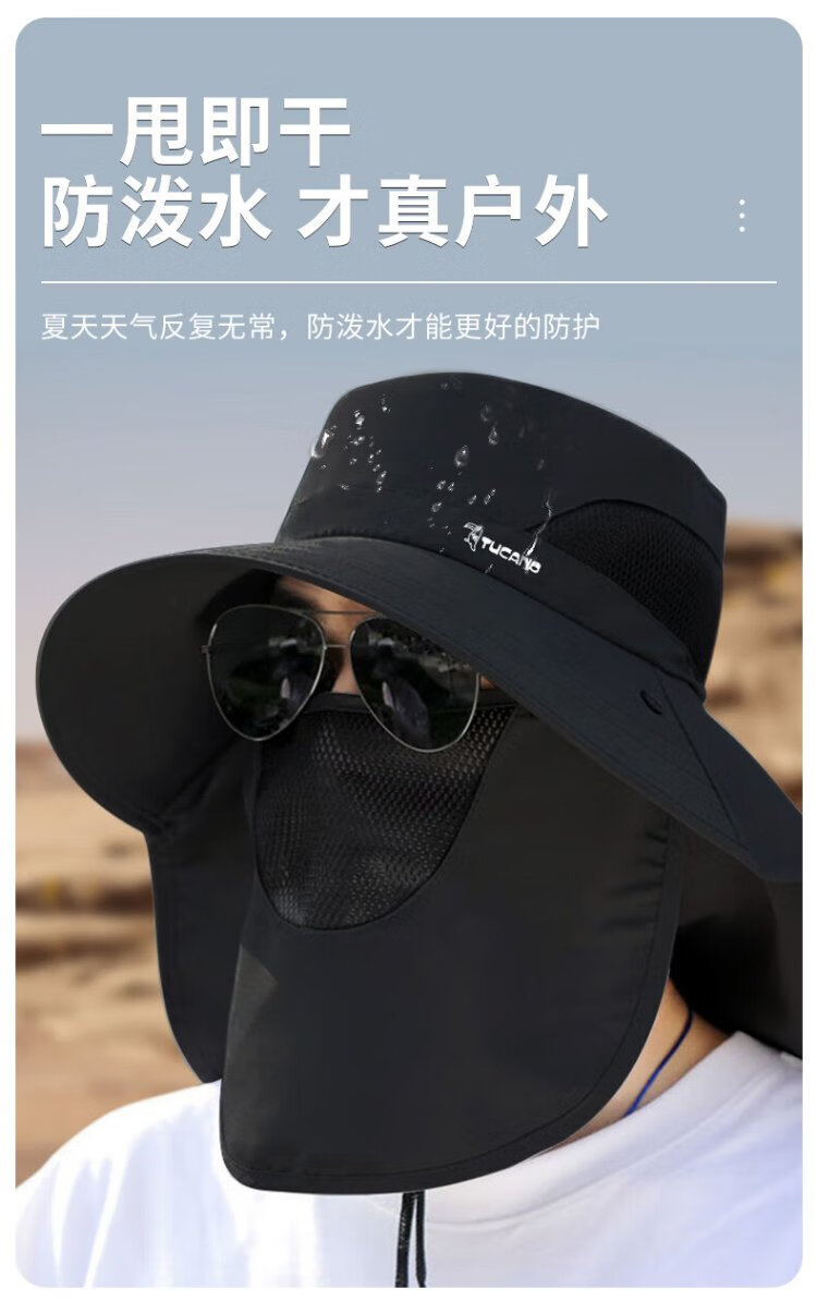 Woodpecker large-brimmed sun hat for men, anti-UV face covering, neck protection, sun protection mask, cycling fishing sun hat, sun hat for men