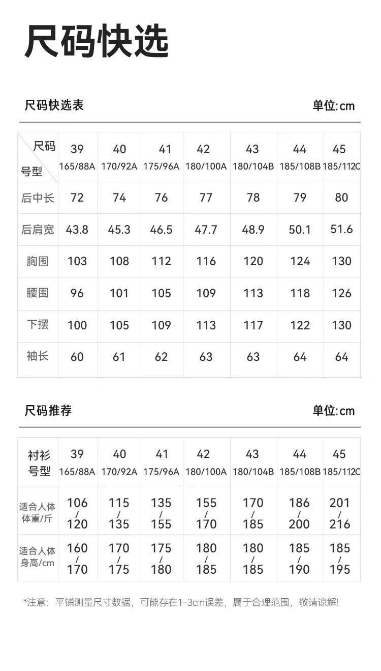 China (cm) 160-165/84-86 165-170 / 88-90 167-172 / 92-96 168-173 / 98-102 170-176 / 106-110
