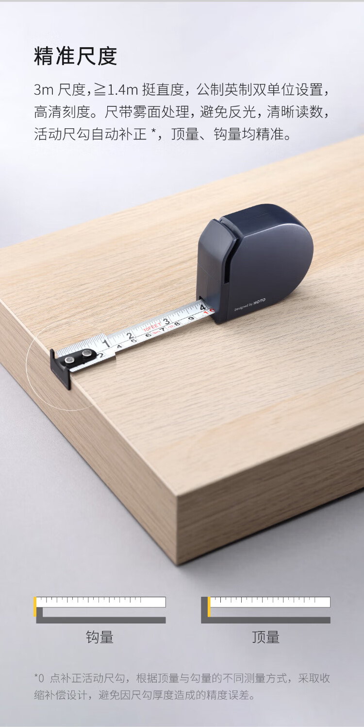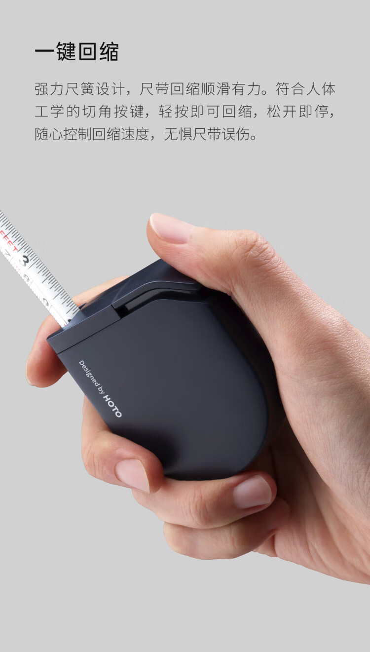 HOTO自动锁定钢卷尺安全防割精度尺子抗摔家用钢尺测量工具