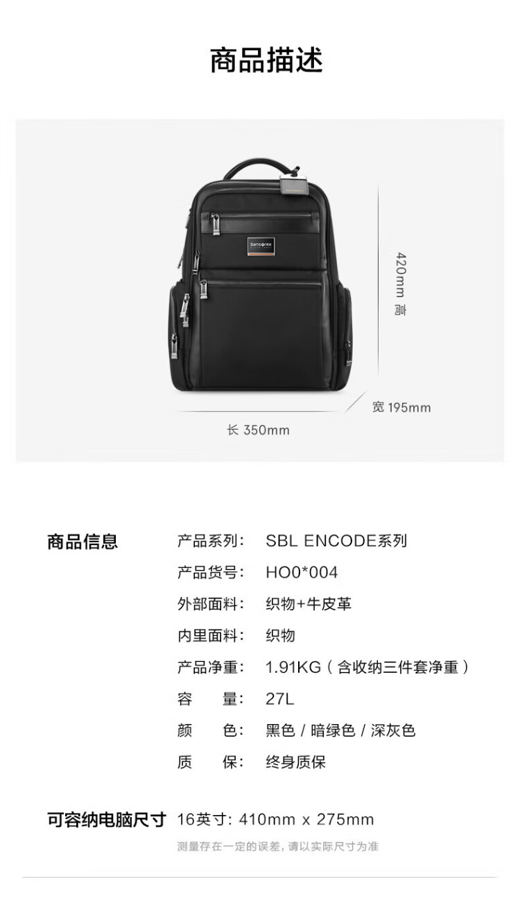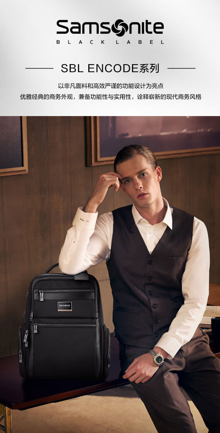 Samsonite Computer Bag Star Same Style President Bag Men's Backpack High-End Business Backpack Black HO0*09004
