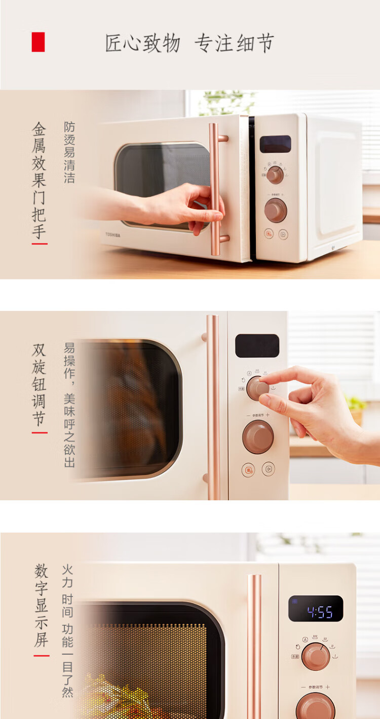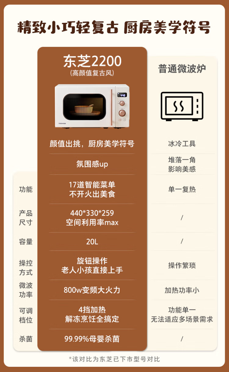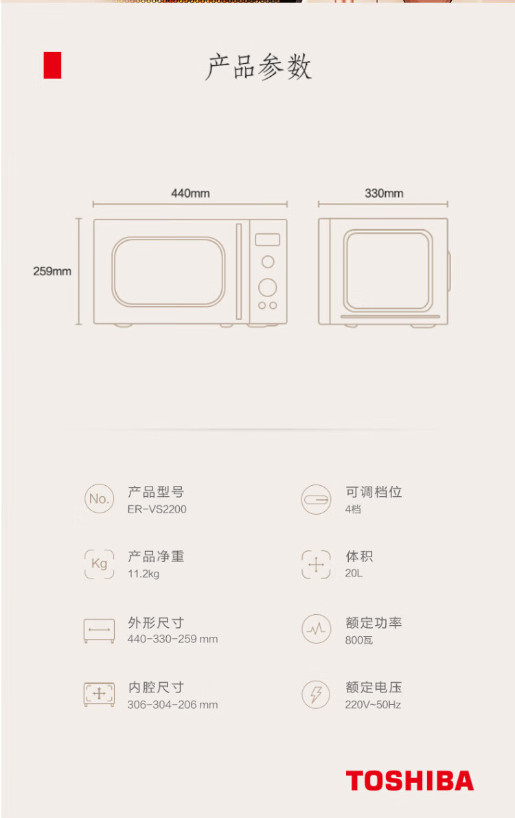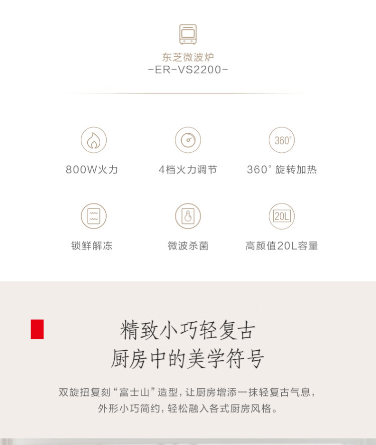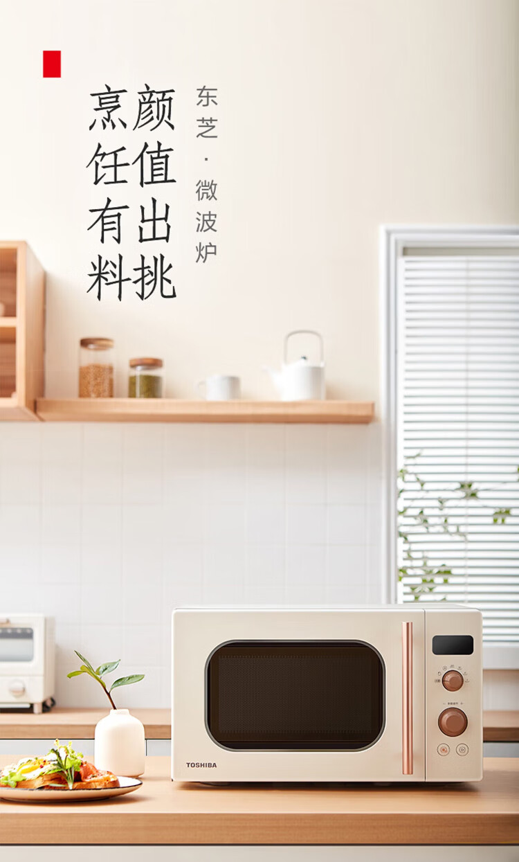 TOSHIBA National Subsidy ER-VS2200 Microwave Oven Household Small Mini Retro Turntable Heating Microwave Sterilization Internet Celebrity Menu 20L