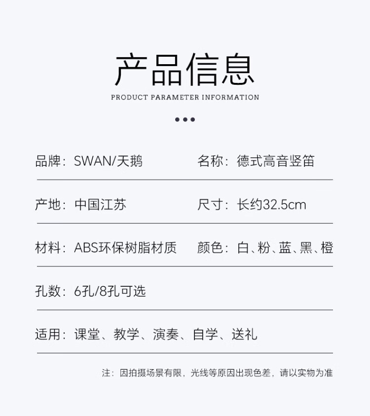 Swan SWAN recorder German-style 6-hole treble recorder (for teaching only-6 holes white)