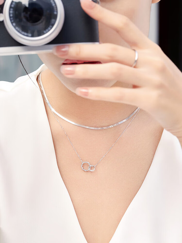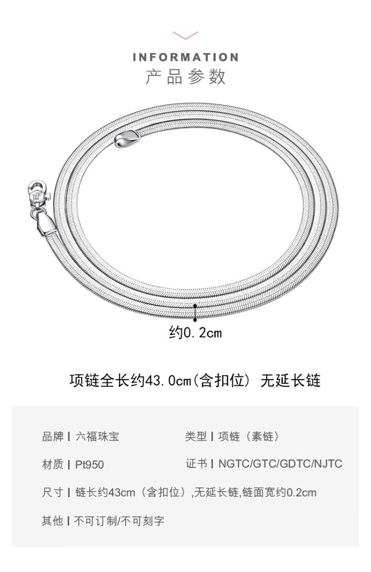 Lukfook Jewelry Cheng Yi same style platinum necklace snake bone chain platinum 950 plain chain clavicle chain price 43cm - about 7.30 grams