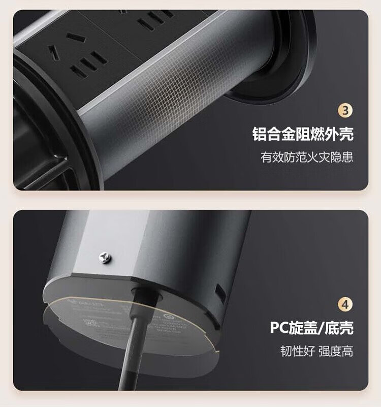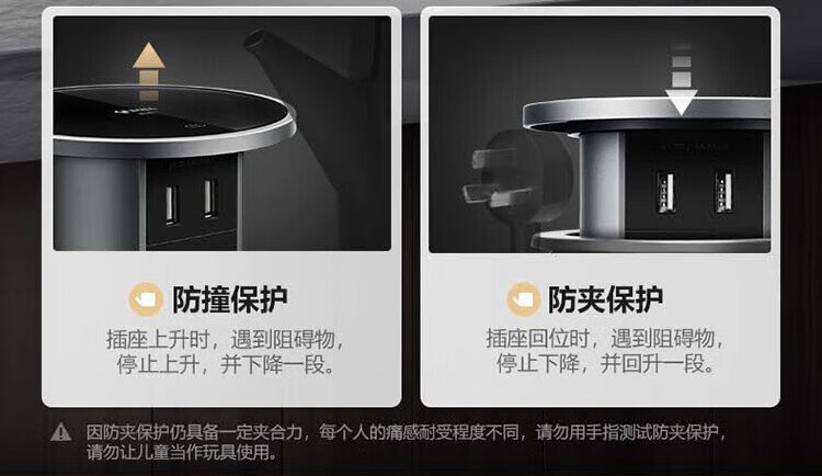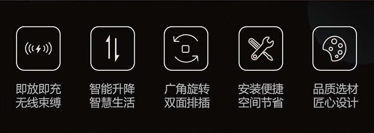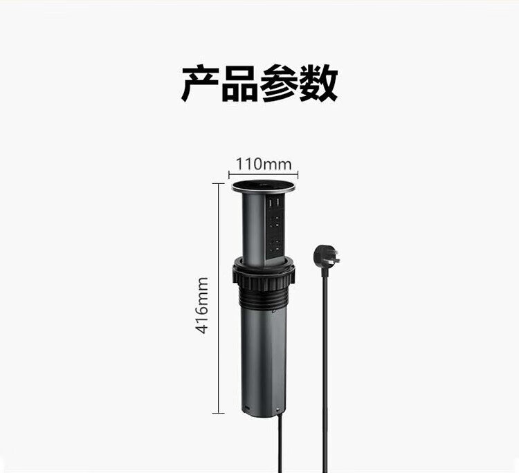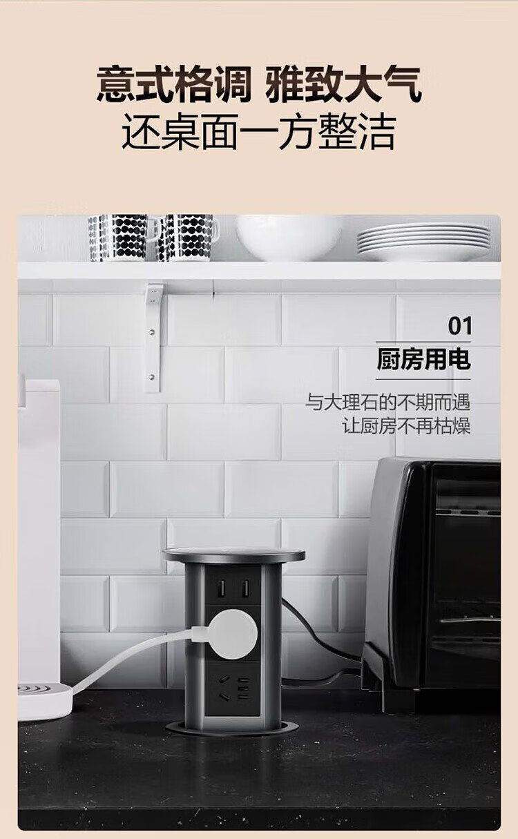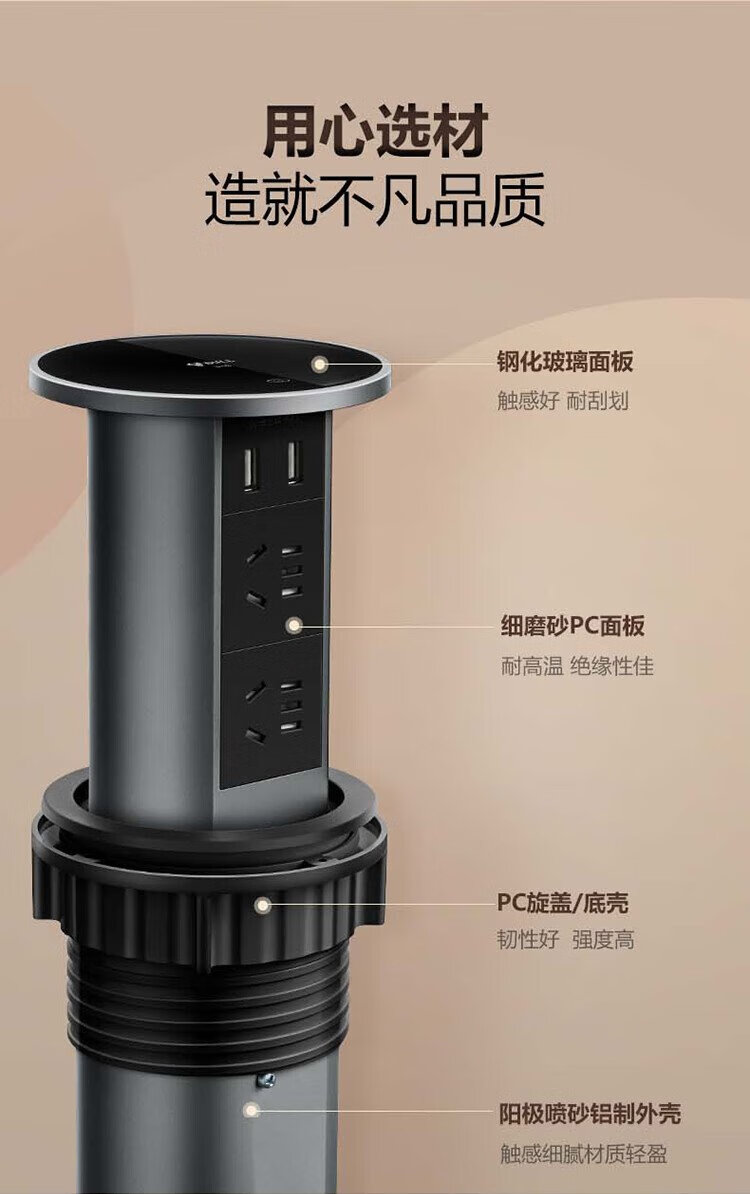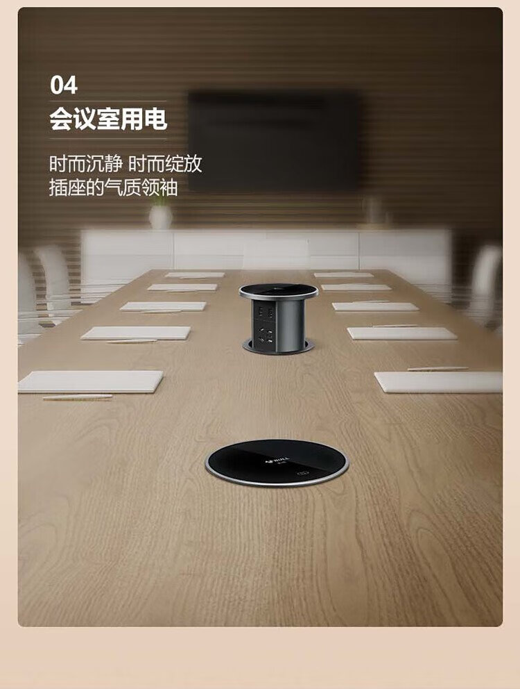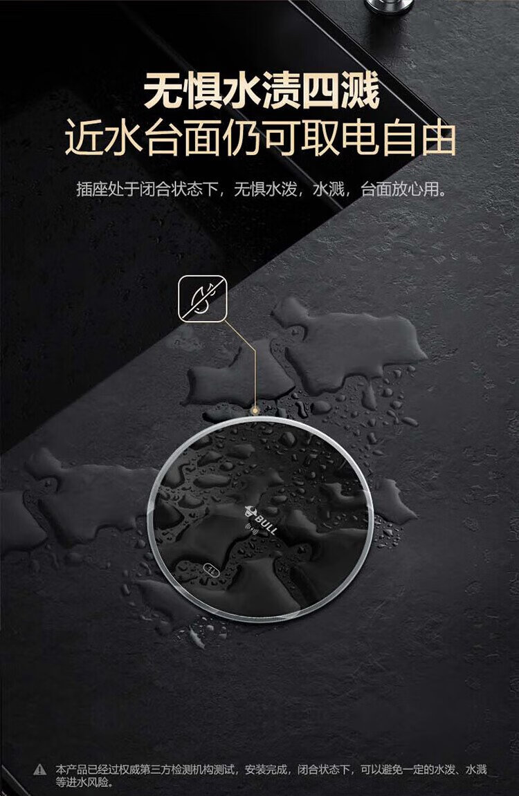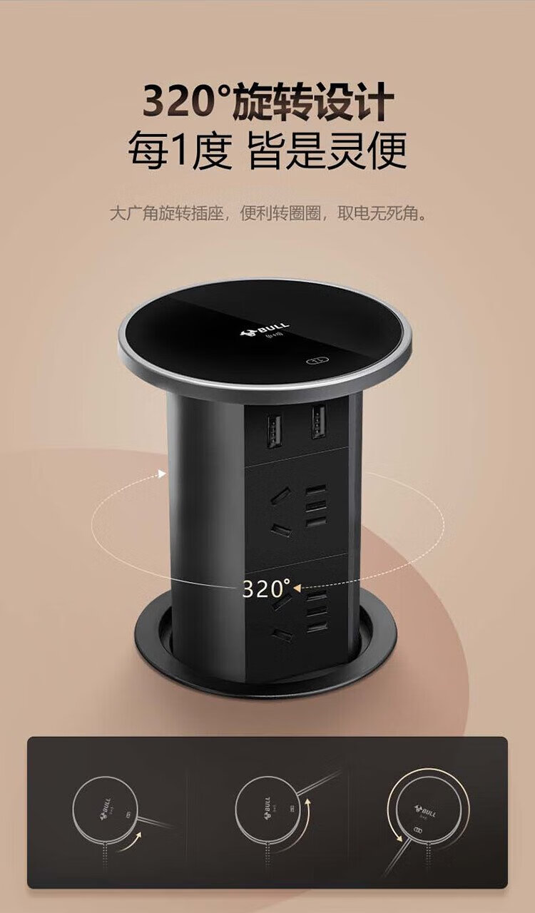 BULL Wireless Charging Electric Intelligent Lift/Hidden/Embedded/Multi-function Socket Kitchen Island Conference Room 4-Pin Five-hole+2USB+10W Inductive Charging Black