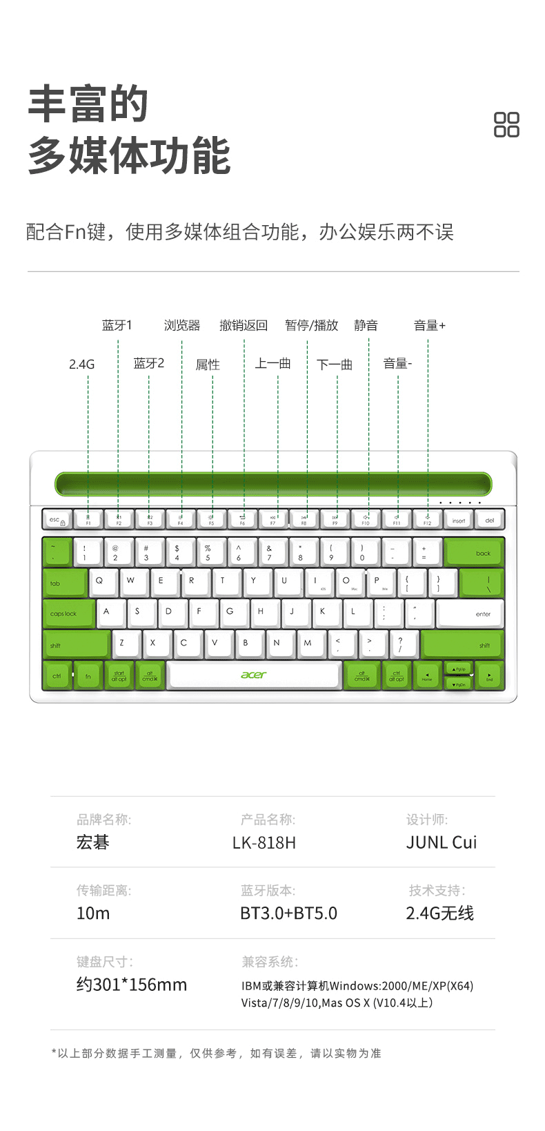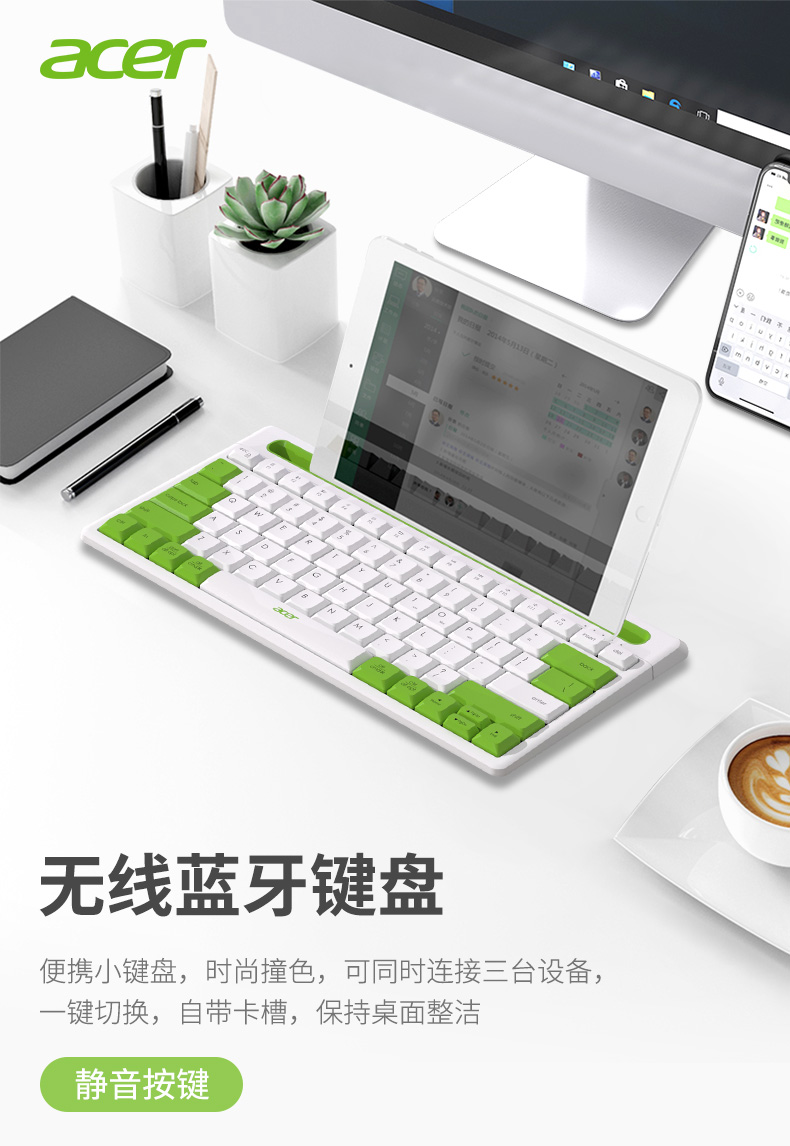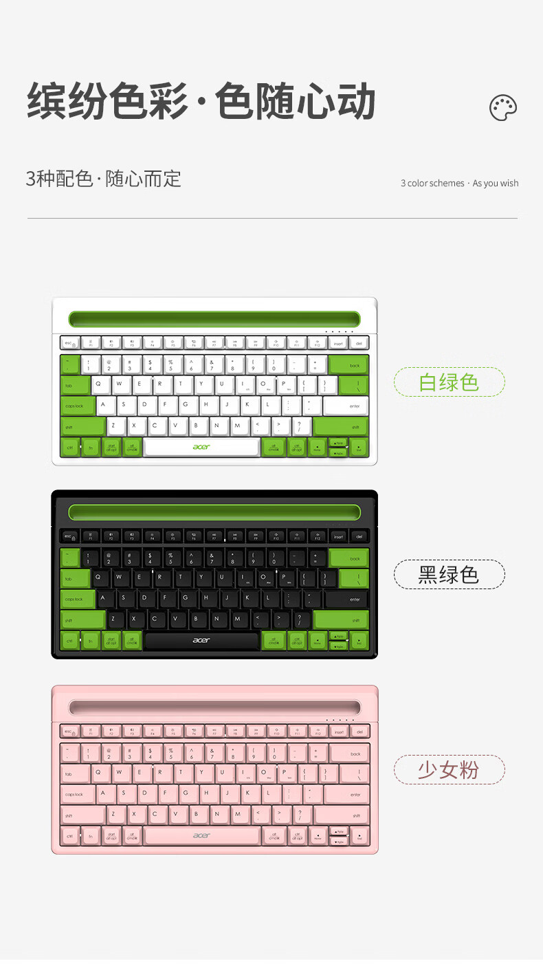 Acer keyboard wireless bluetooth keyboard dual-mode office keyboard female portable ultra-thin keyboard tablet phone notebook keyboard girly pink LK-818H