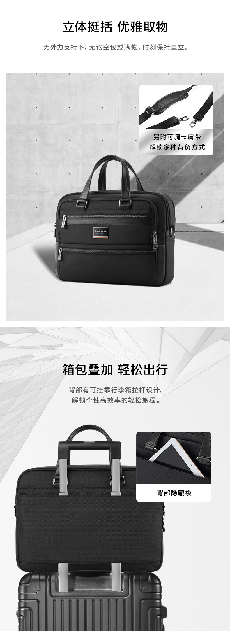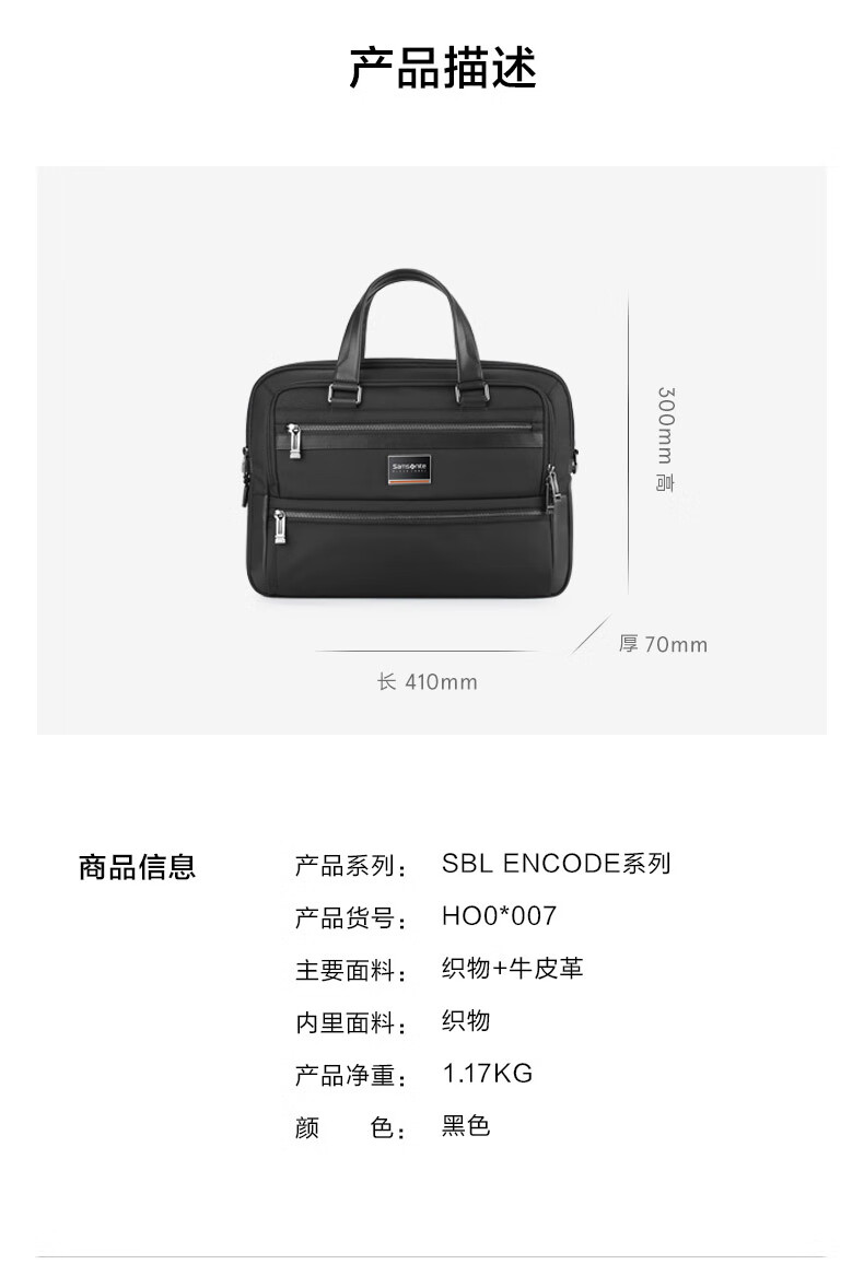 Samsonite Computer Bag High-End President Bag Men's Handbag Fashion Men's Bag Business Briefcase HO0*09007 Black