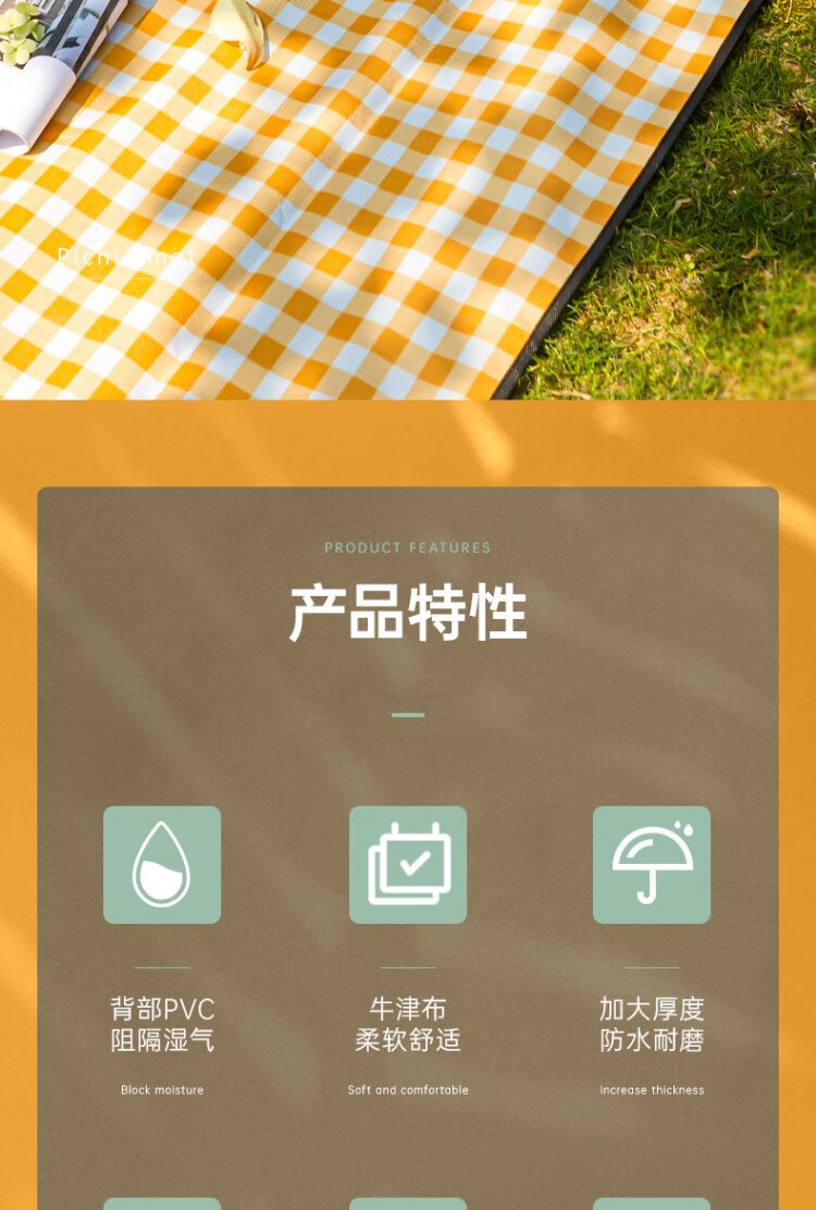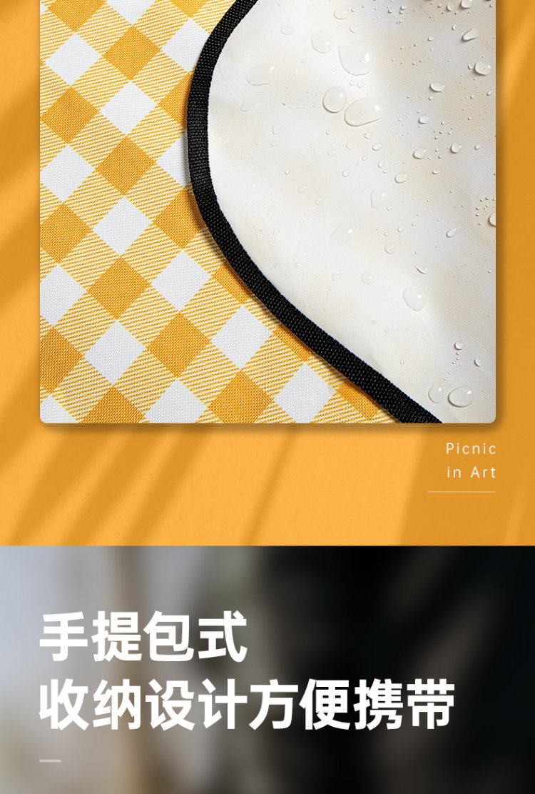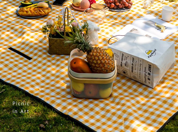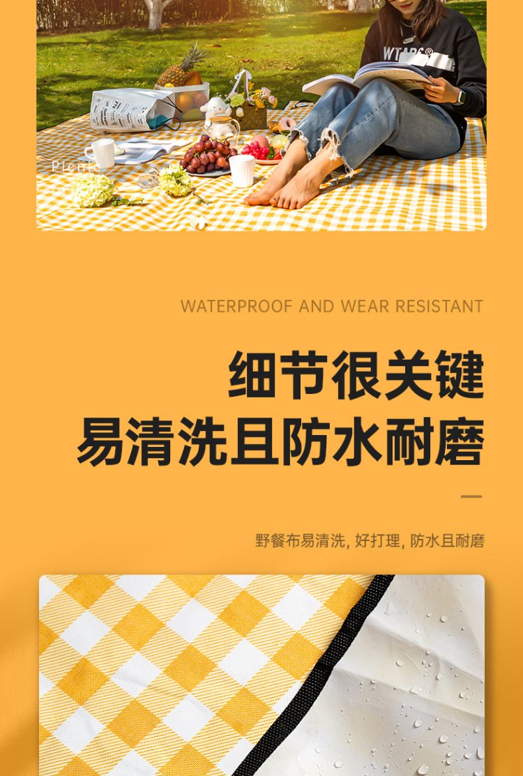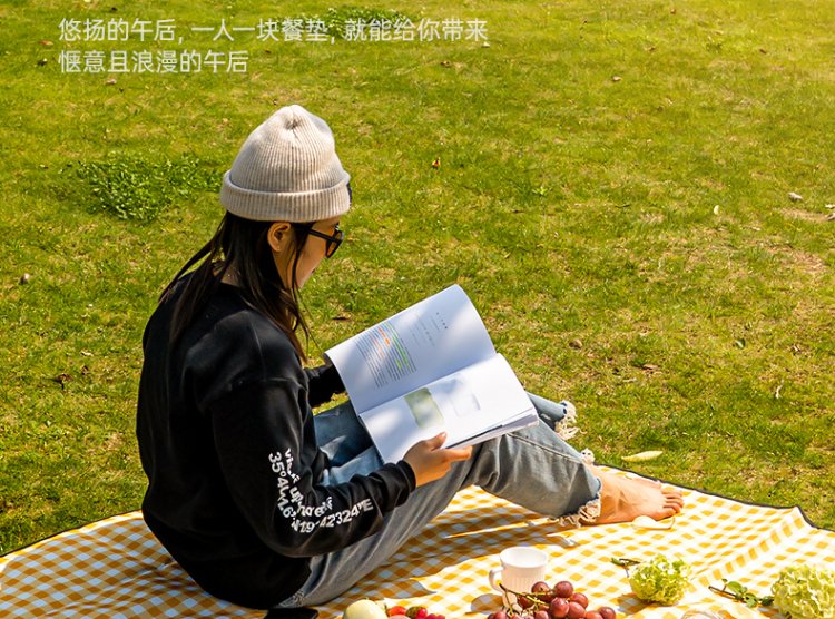 Deli thickened picnic mat outdoor oversized foldable ground mat camping beach tent moisture-proof mat yellow and white grid large