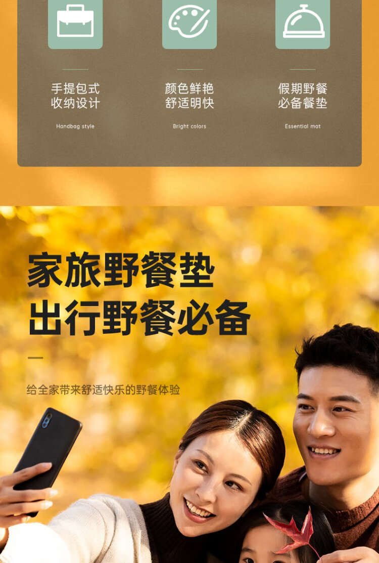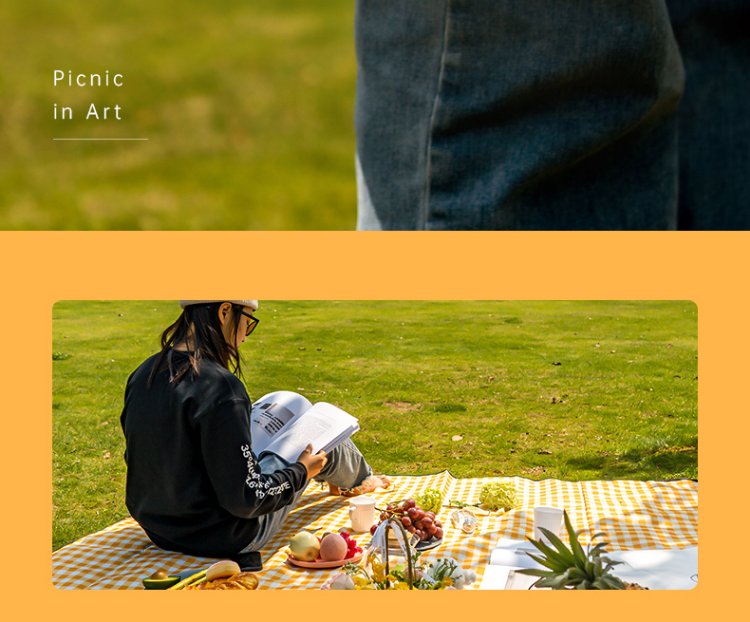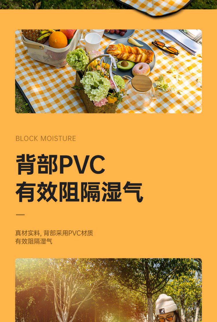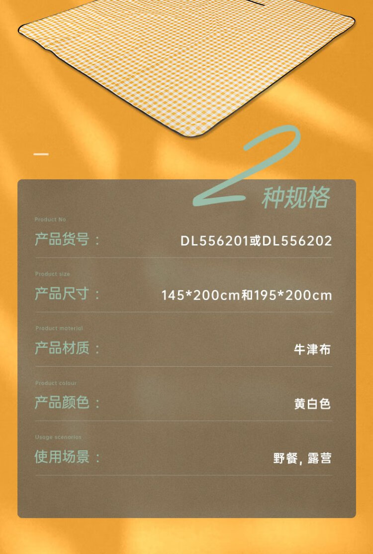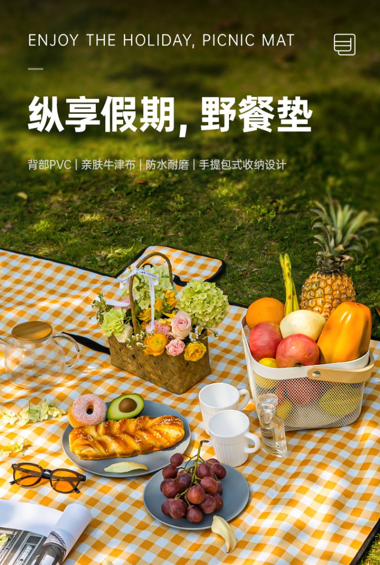 Deli thickened picnic mat outdoor oversized foldable ground mat camping beach tent moisture-proof mat yellow and white grid large