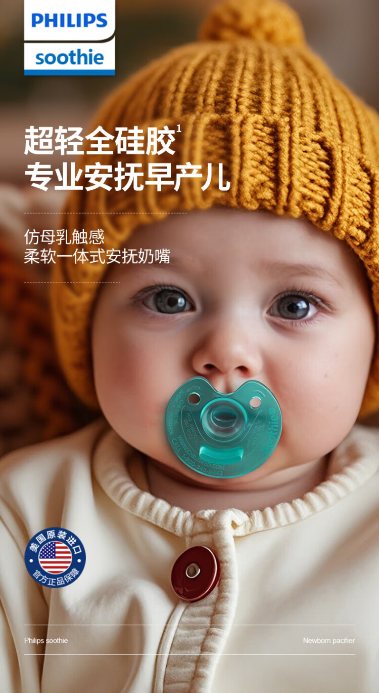 Philips pacifier 0-6-18 months anti-colic, newborn baby full silicone one-piece, same style as celebrities