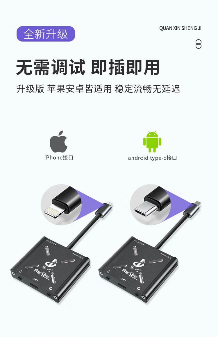 Changba Live No. 1 gray Apple version mobile phone OTG transmission converter mobile phone live broadcast with microphone singing recording internal and external sound card speaker adapter lightning interface