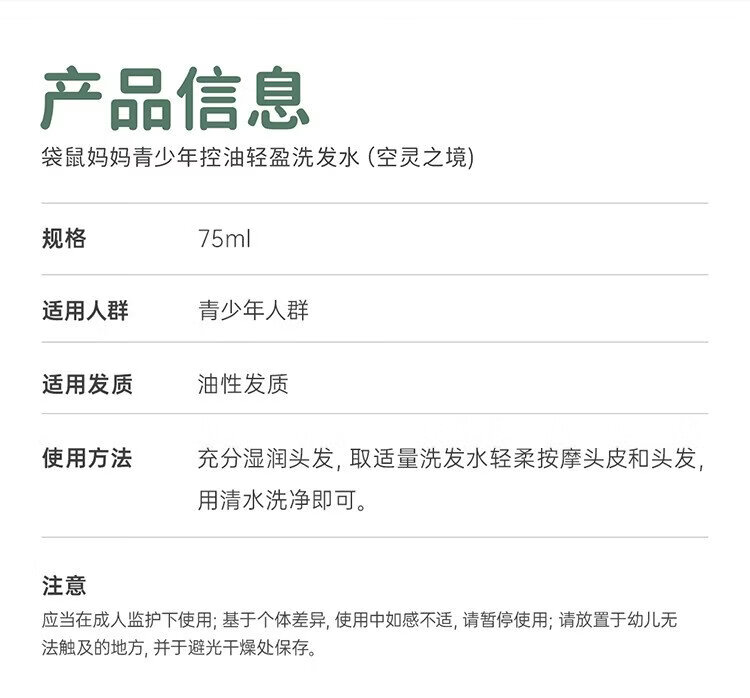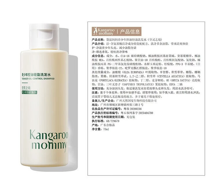 Kangaroo Mom Youth Shampoo 75ml Oil Control Fluffy Children's Shampoo For Adolescent Students