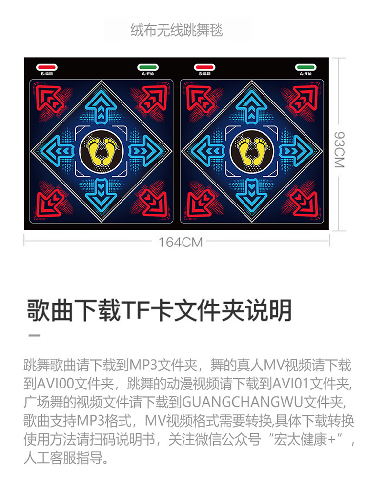 Hongtai double wireless dance mat home TV dance machine game somatosensory dancing and beautiful legs running mat