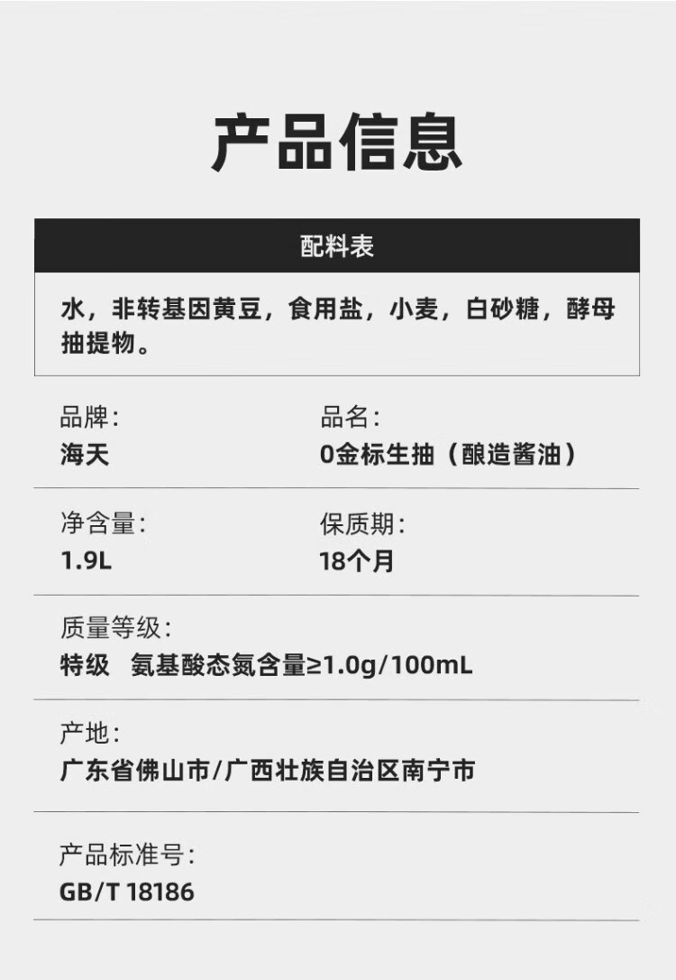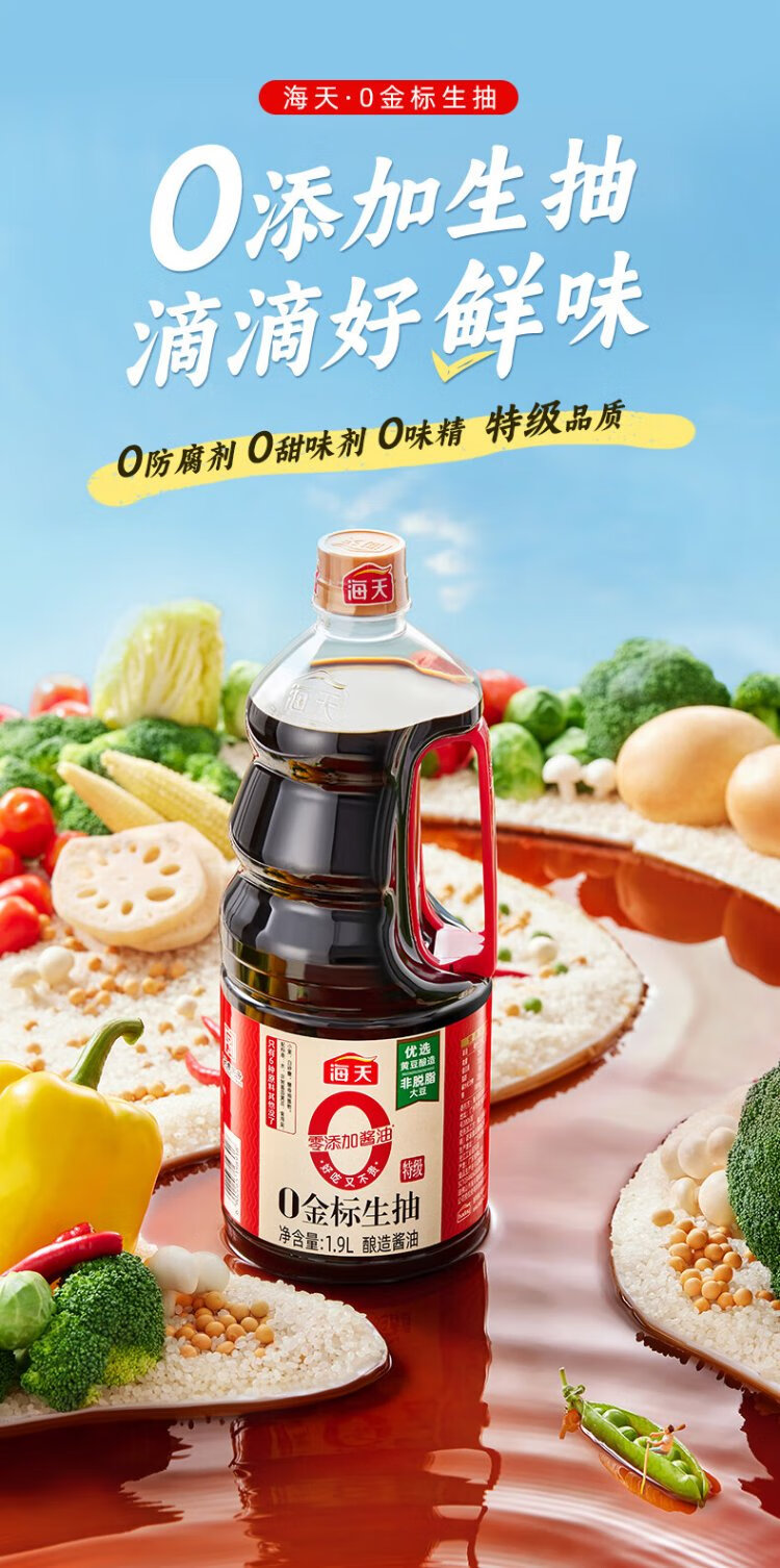Haitian 0Gold Label Light Soy Sauce 1.9L Premium Soy Sauce Gold Label Series 0Added Preservatives