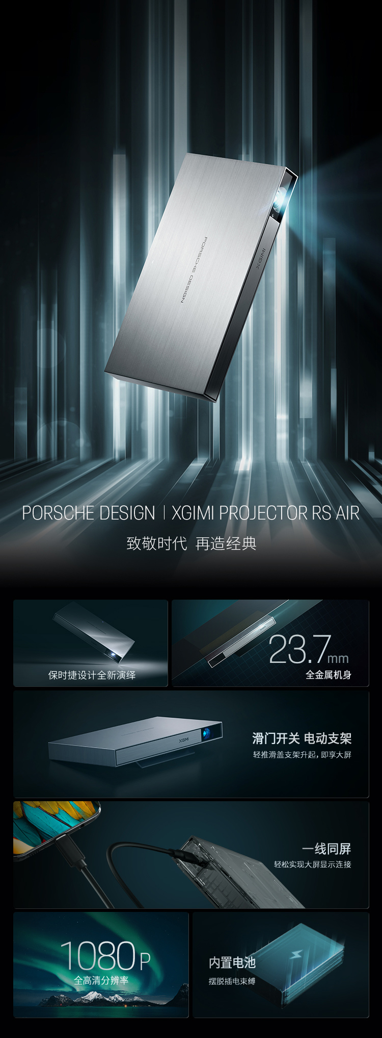 XGIMI RS AIR Porsche Design Projector Home Portable Projector (Ultra-thin Metal Body Built-in Battery XGIMI Exclusive 2-Year Full Warranty)