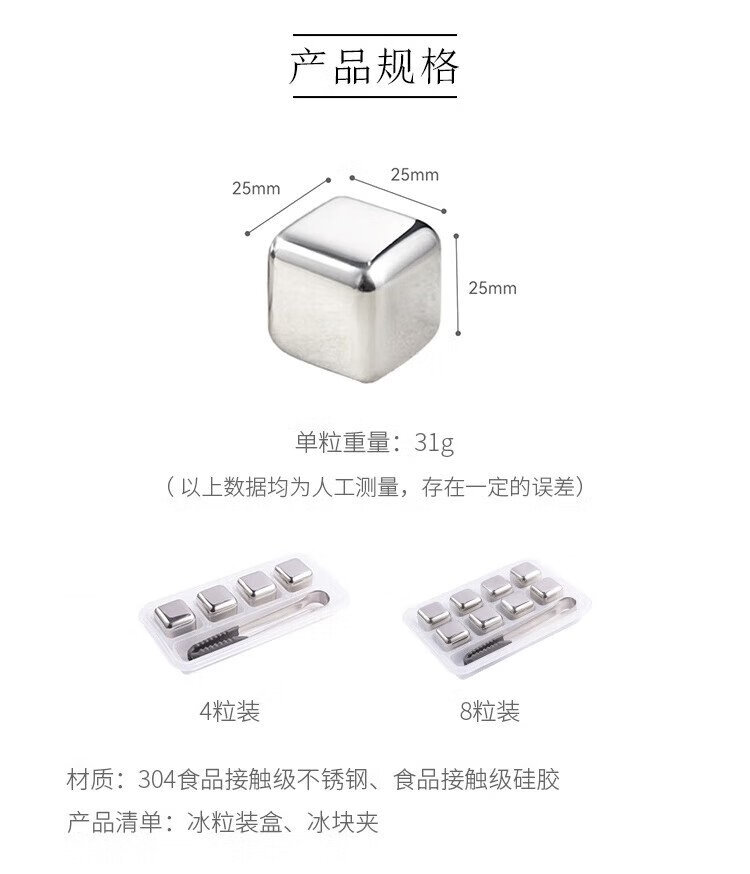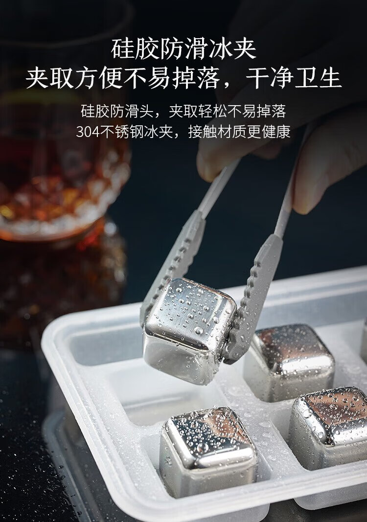 Made in Tokyo, ice cubes 304 stainless steel ice cube metal ice making artifact eight pieces + silicone ice clip + PP box