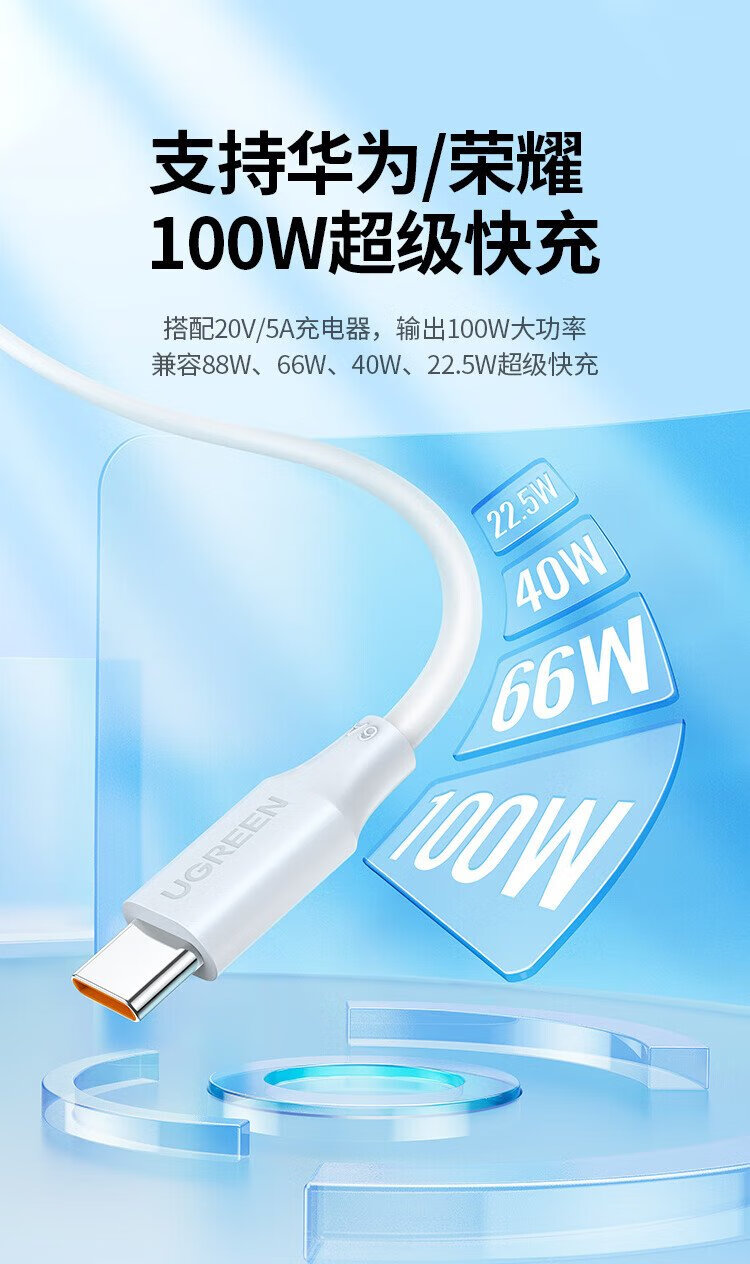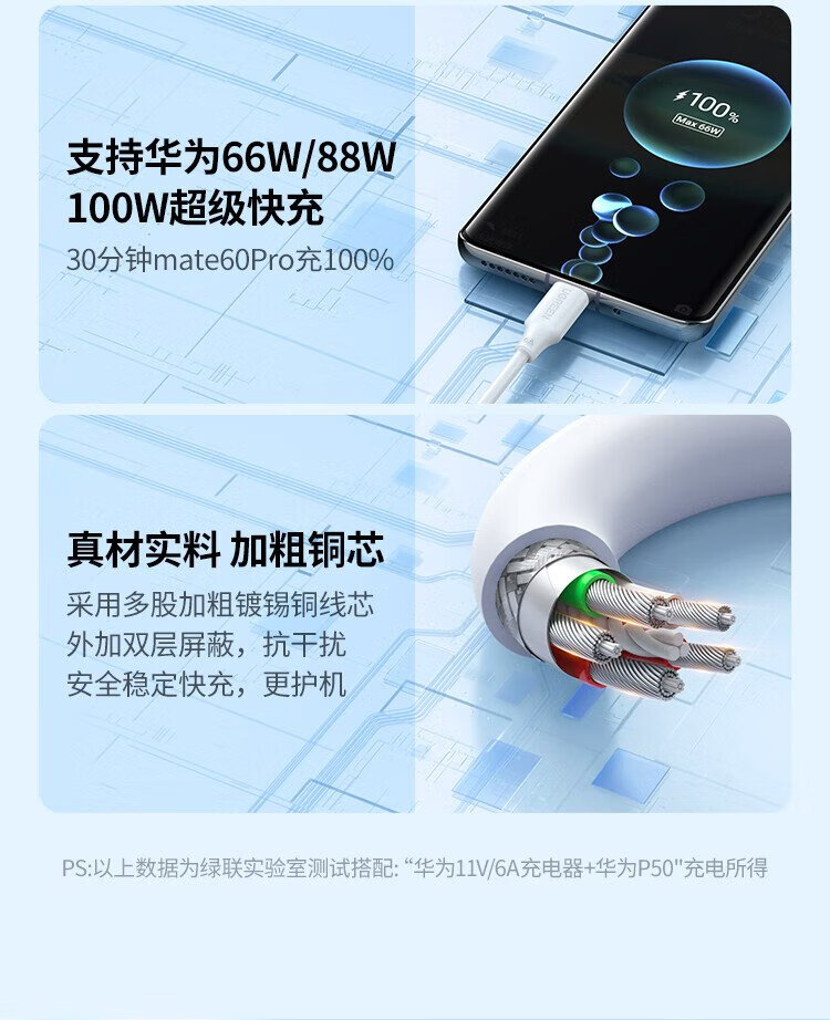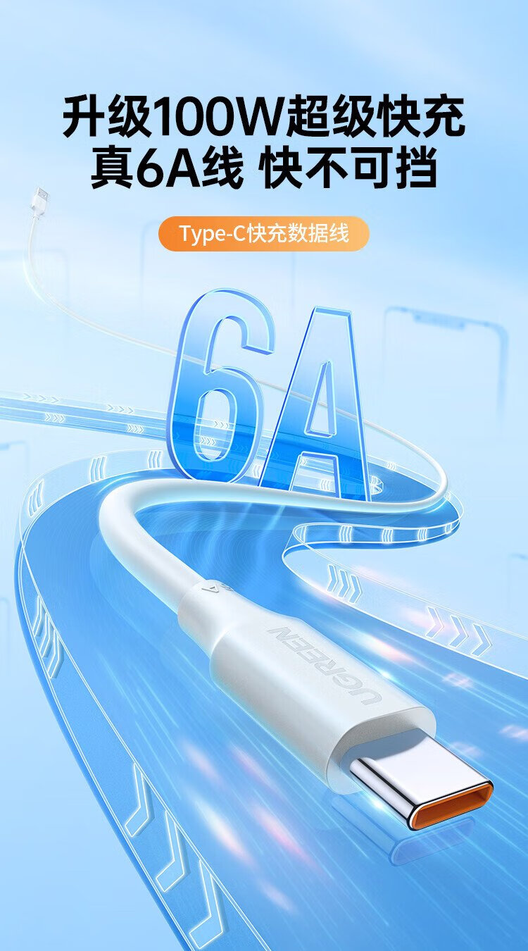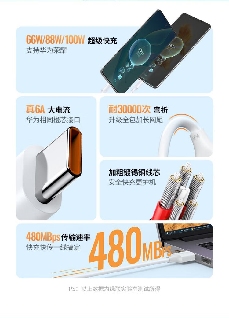Greenlink Type-C data cable 6A is suitable for Huawei Honor super fast charging 100W/88W/66W/40W charging cable Pura80/70/Mate70 Xiaomi Android mobile phone and tablet