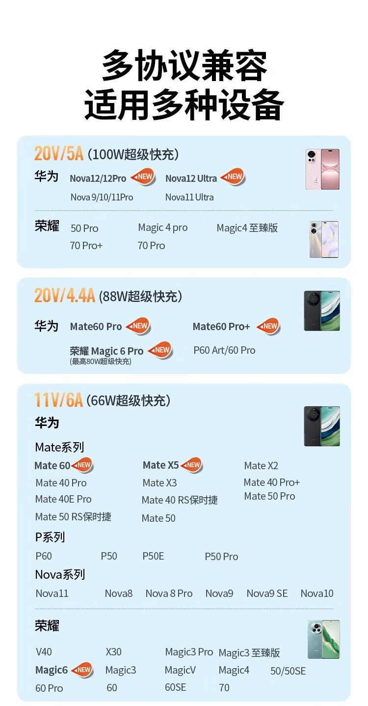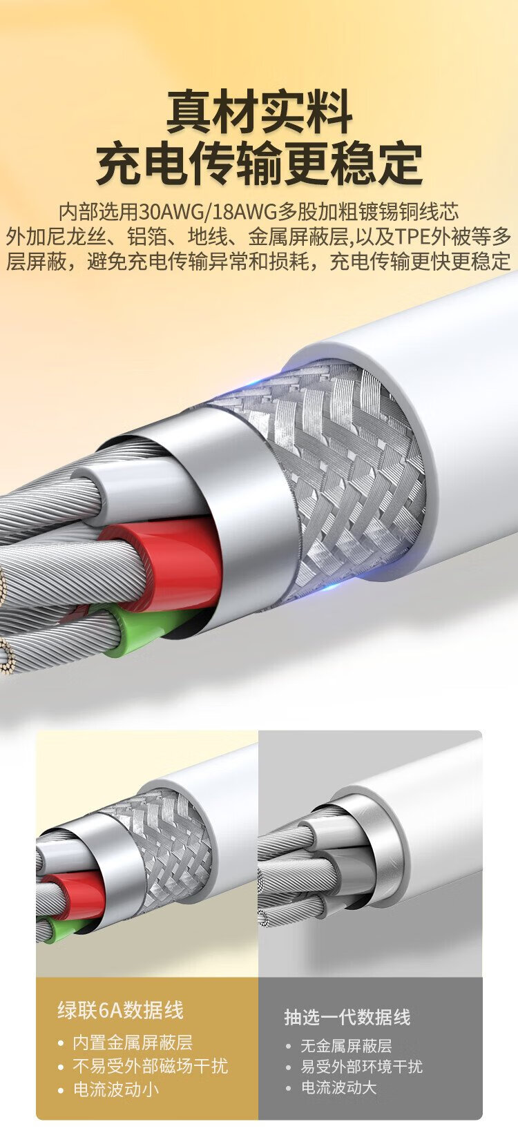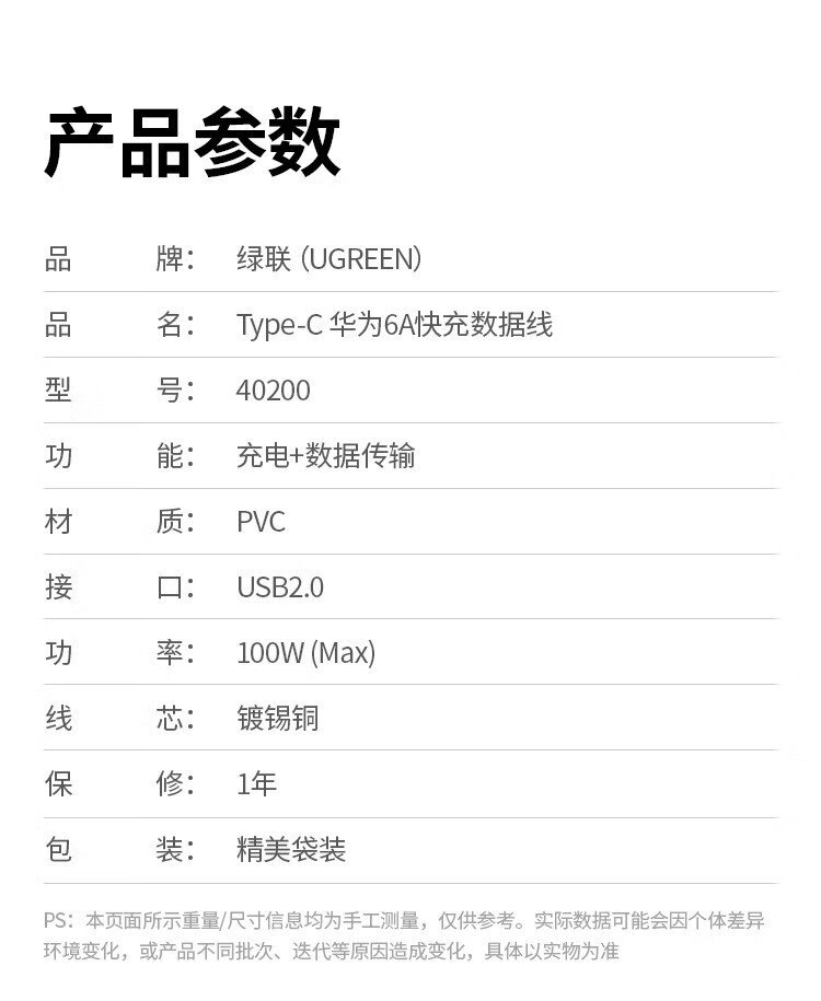 Greenlink Type-C data cable 6A is suitable for Huawei Honor super fast charging 100W/88W/66W/40W charging cable Pura80/70/Mate70 Xiaomi Android mobile phone and tablet