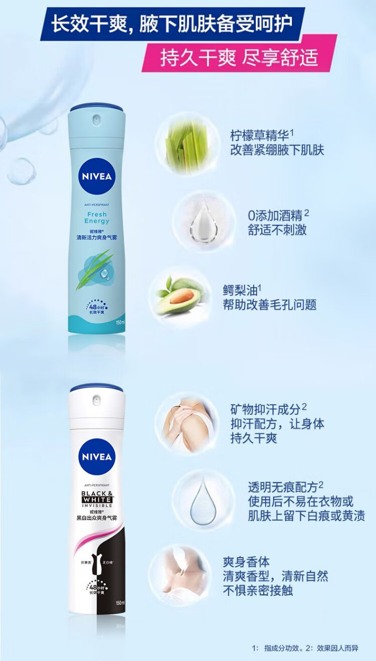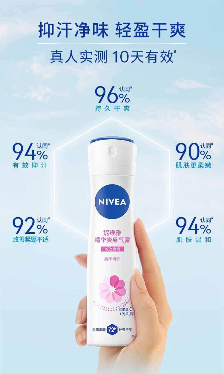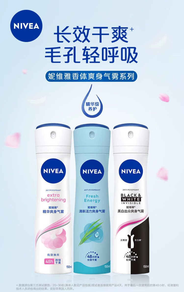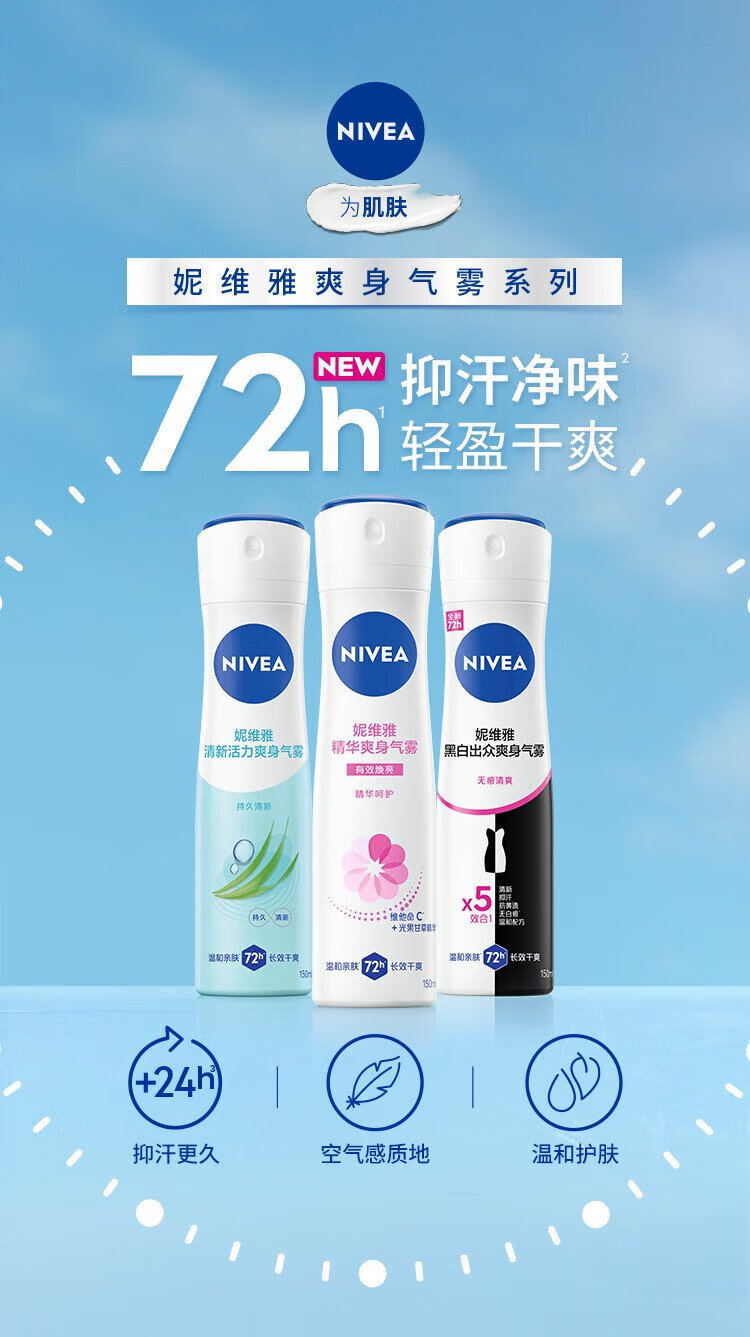 NIVEA Vitality Fresh Body Mist 150ml (fresh and cooling armpit antiperspirant spray, long-lasting dryness)