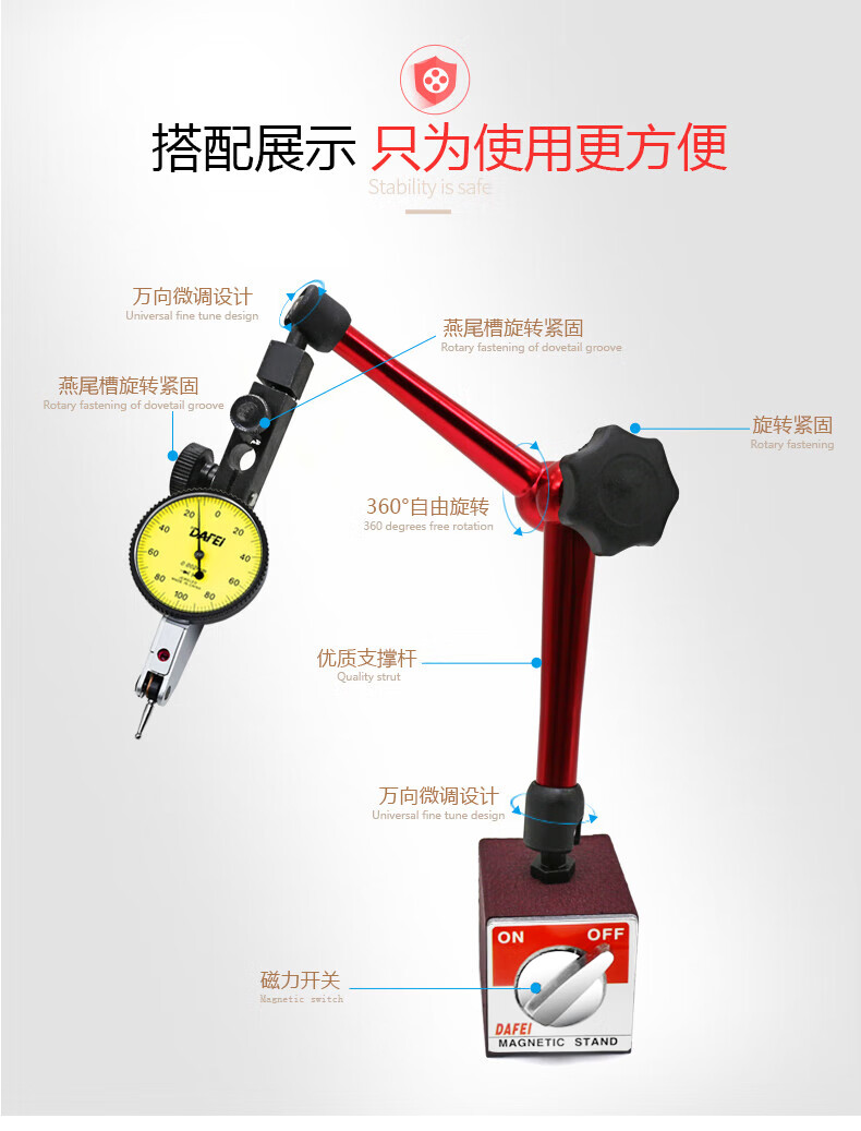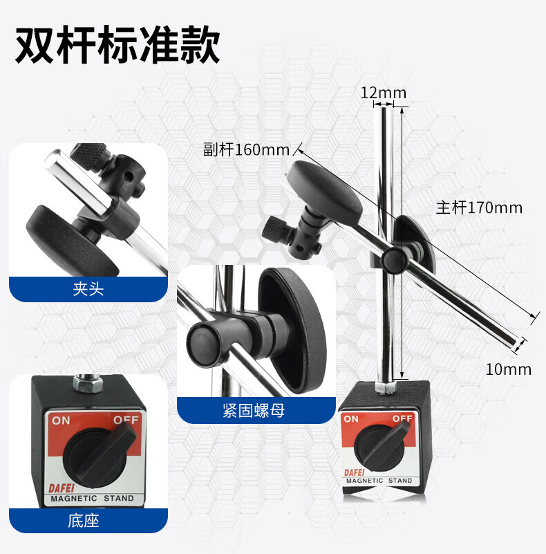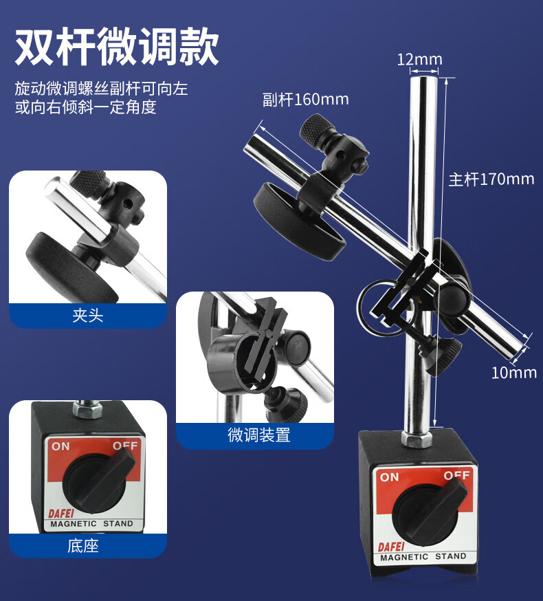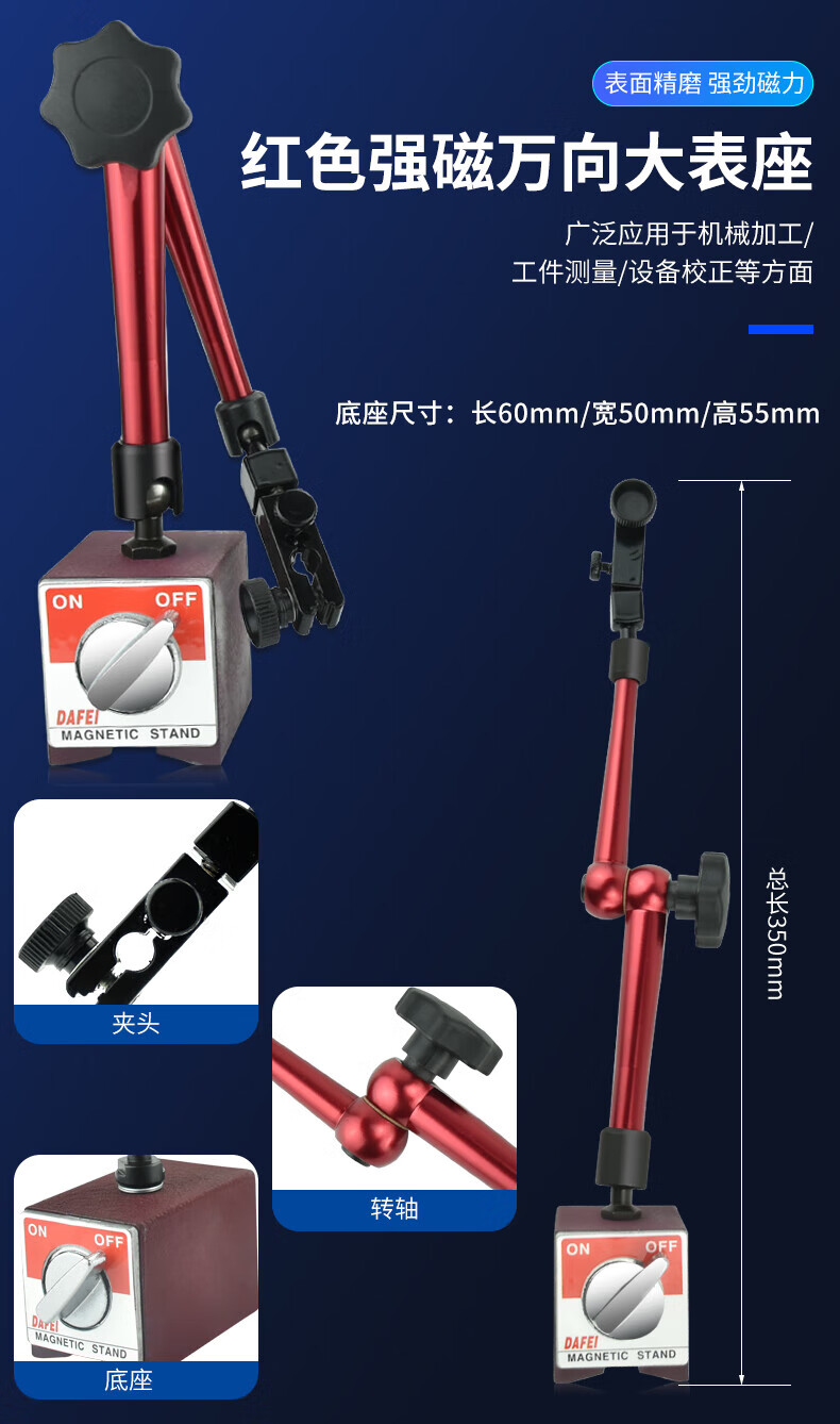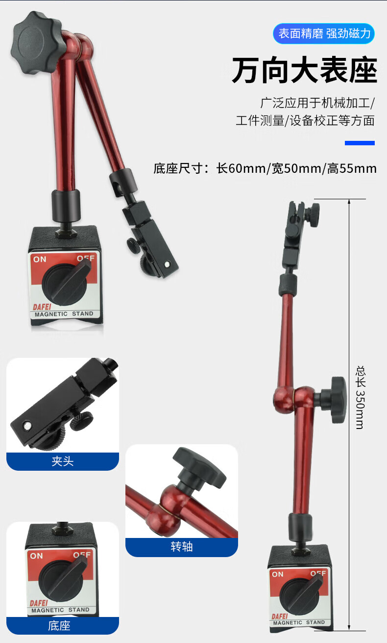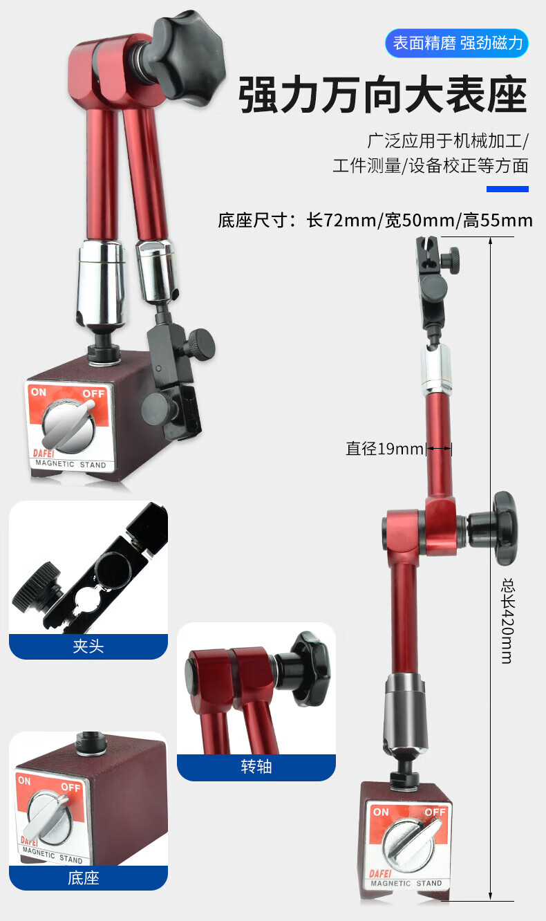 DAFEI mechanical magnetic dial indicator seat universal strong calibration lever dial indicator seat bracket strong magnetic watch seat strong magnetic small universal (total length 190mm)