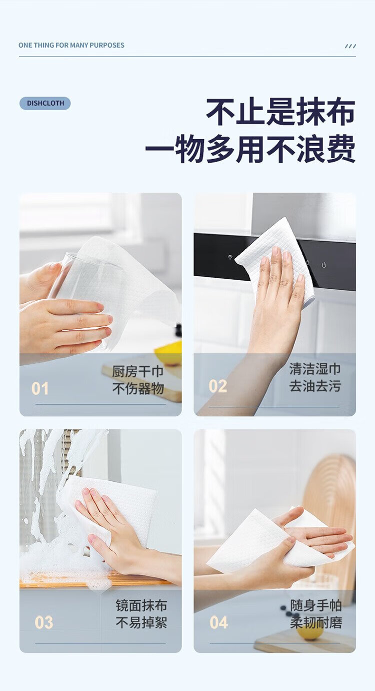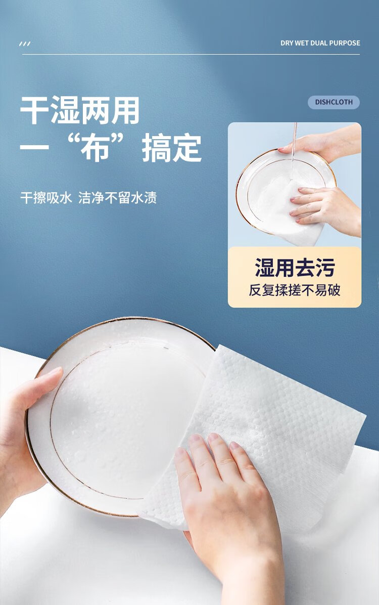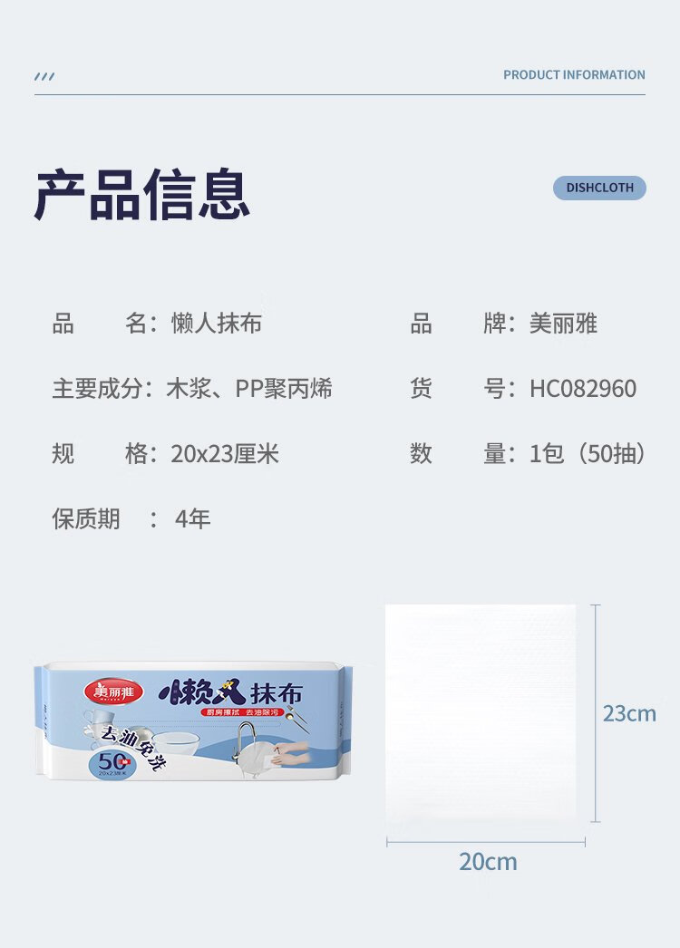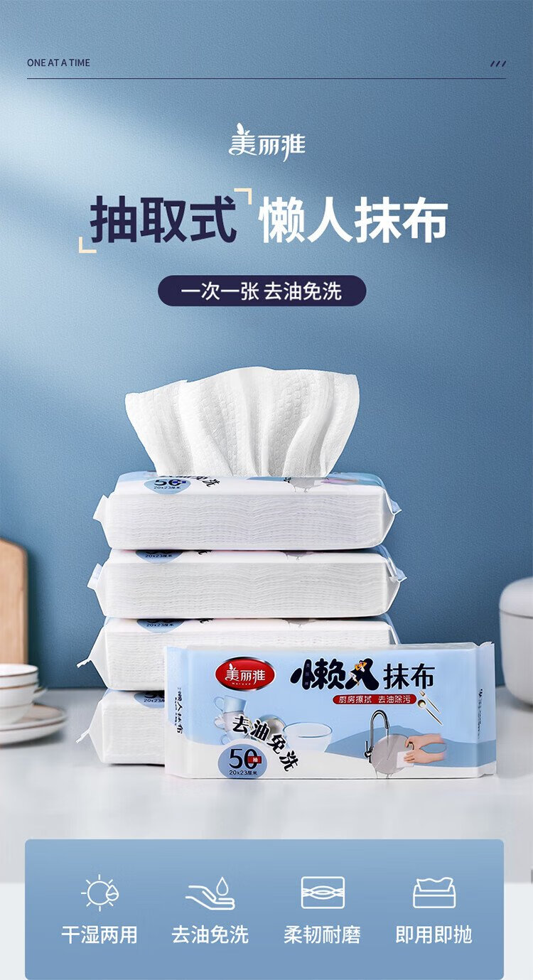 Meiya disposable lazy rags 20*23cm 50 sheets thickened kitchen paper removable dish towels washable for home use