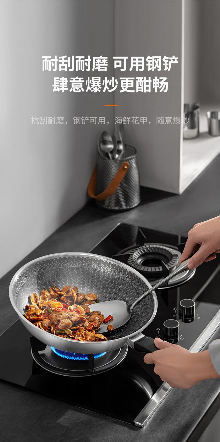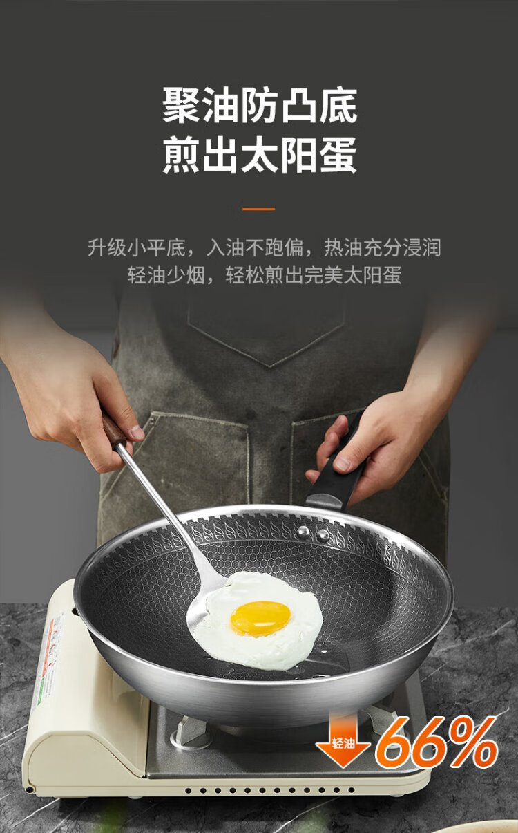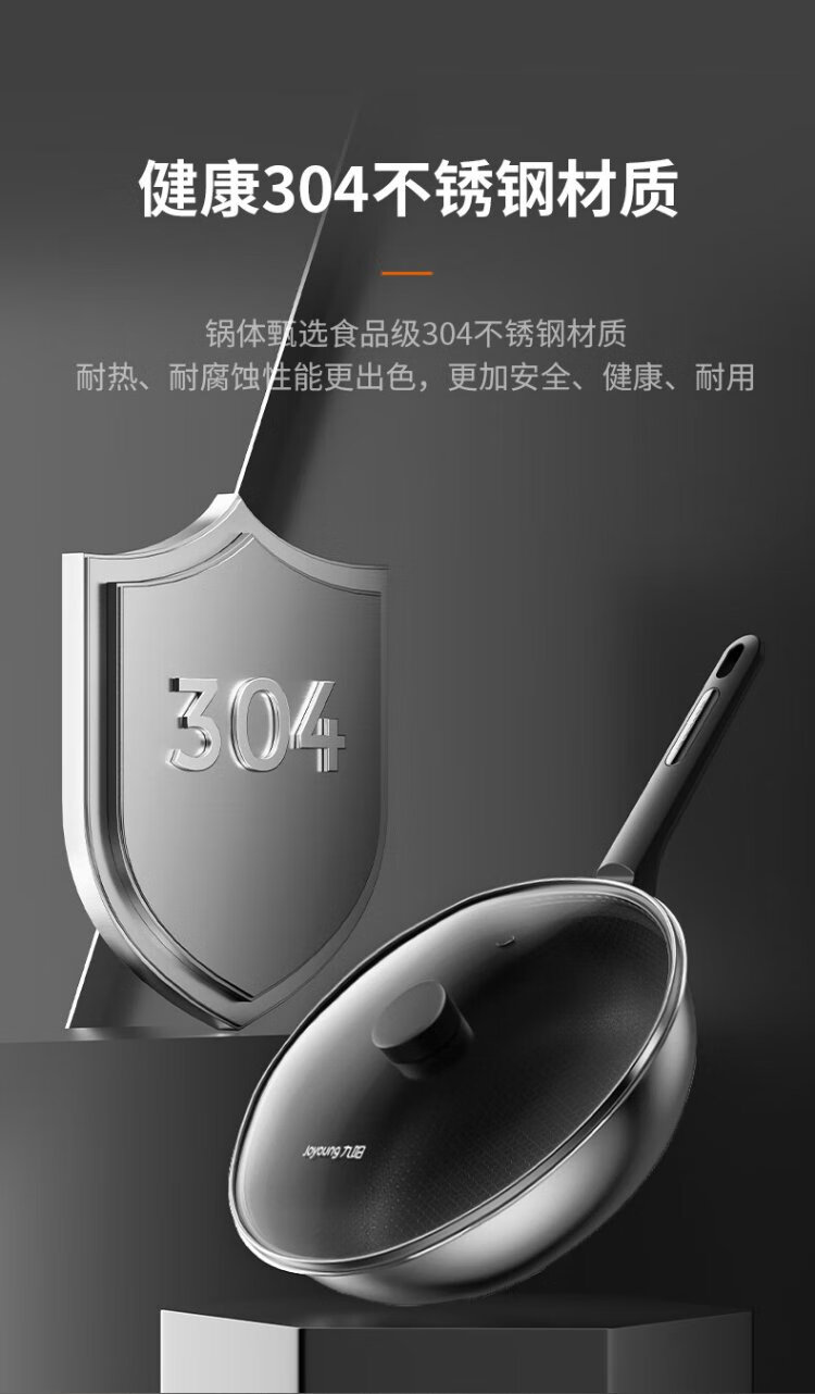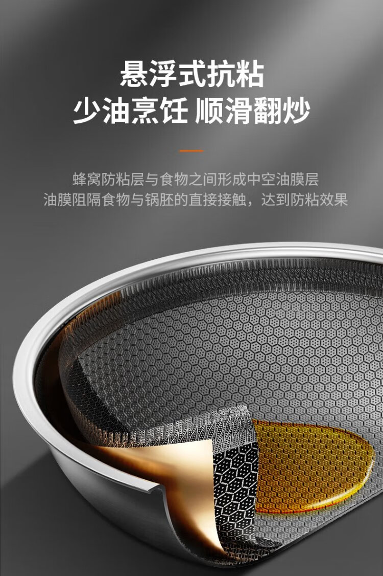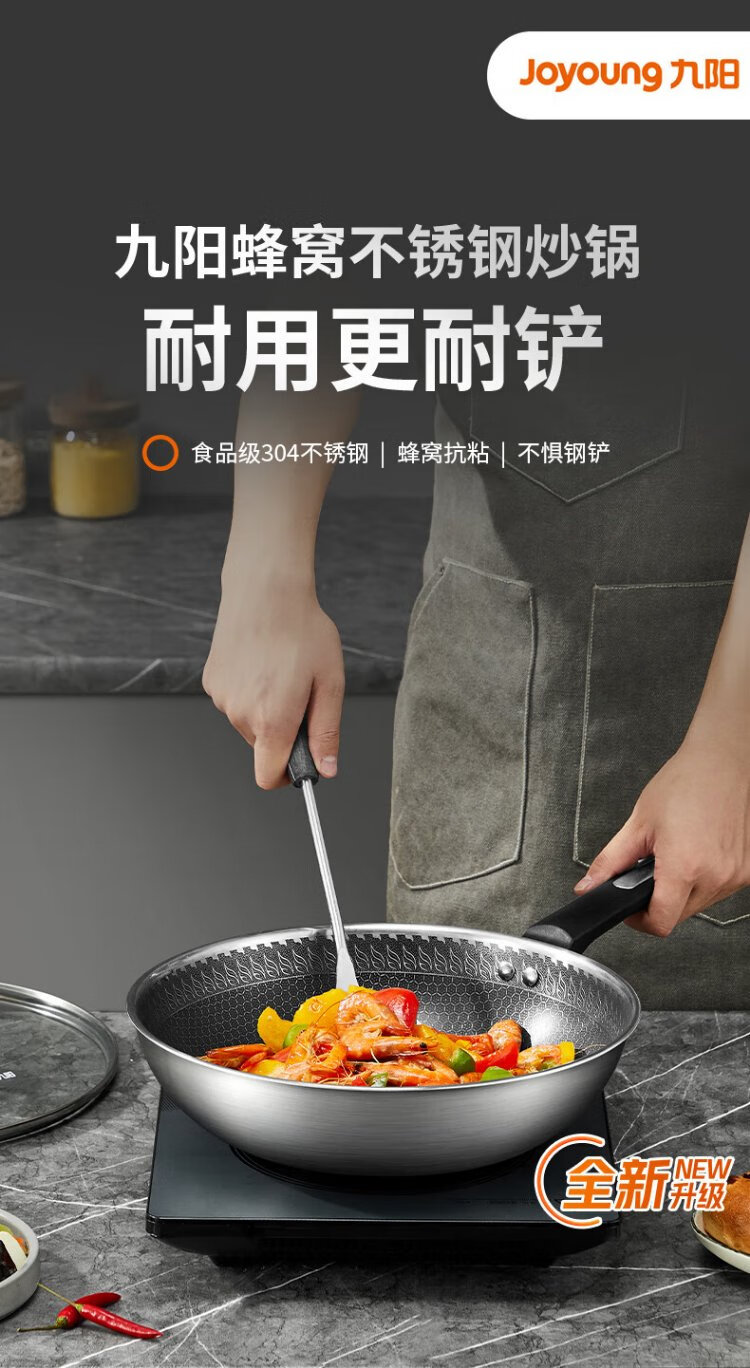 Joyoung wok 304 stainless steel honeycomb non-stick wok wok flat bottom frying pan household non-stick stove 30cm