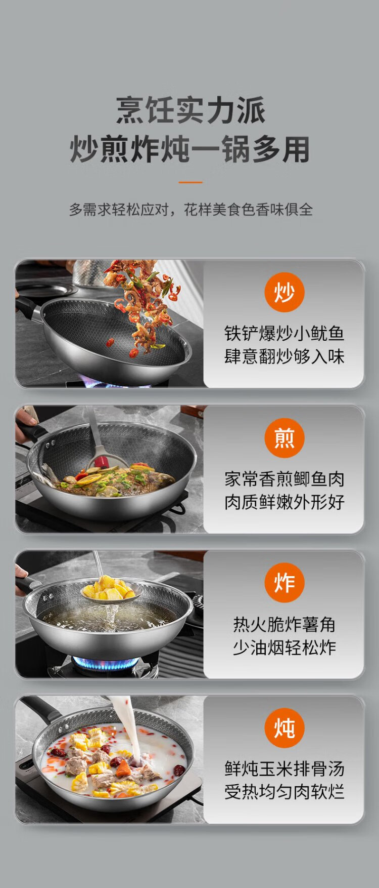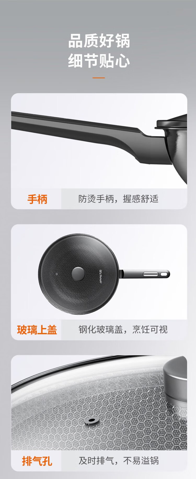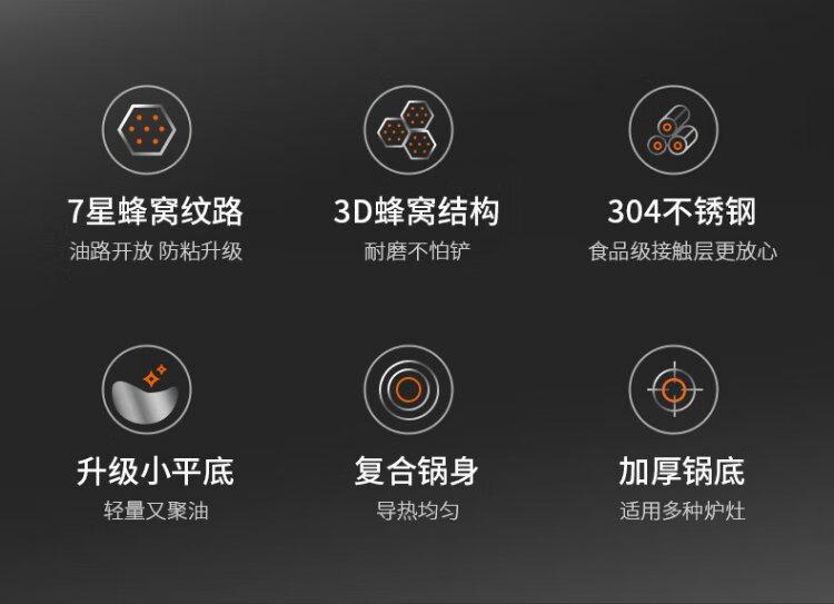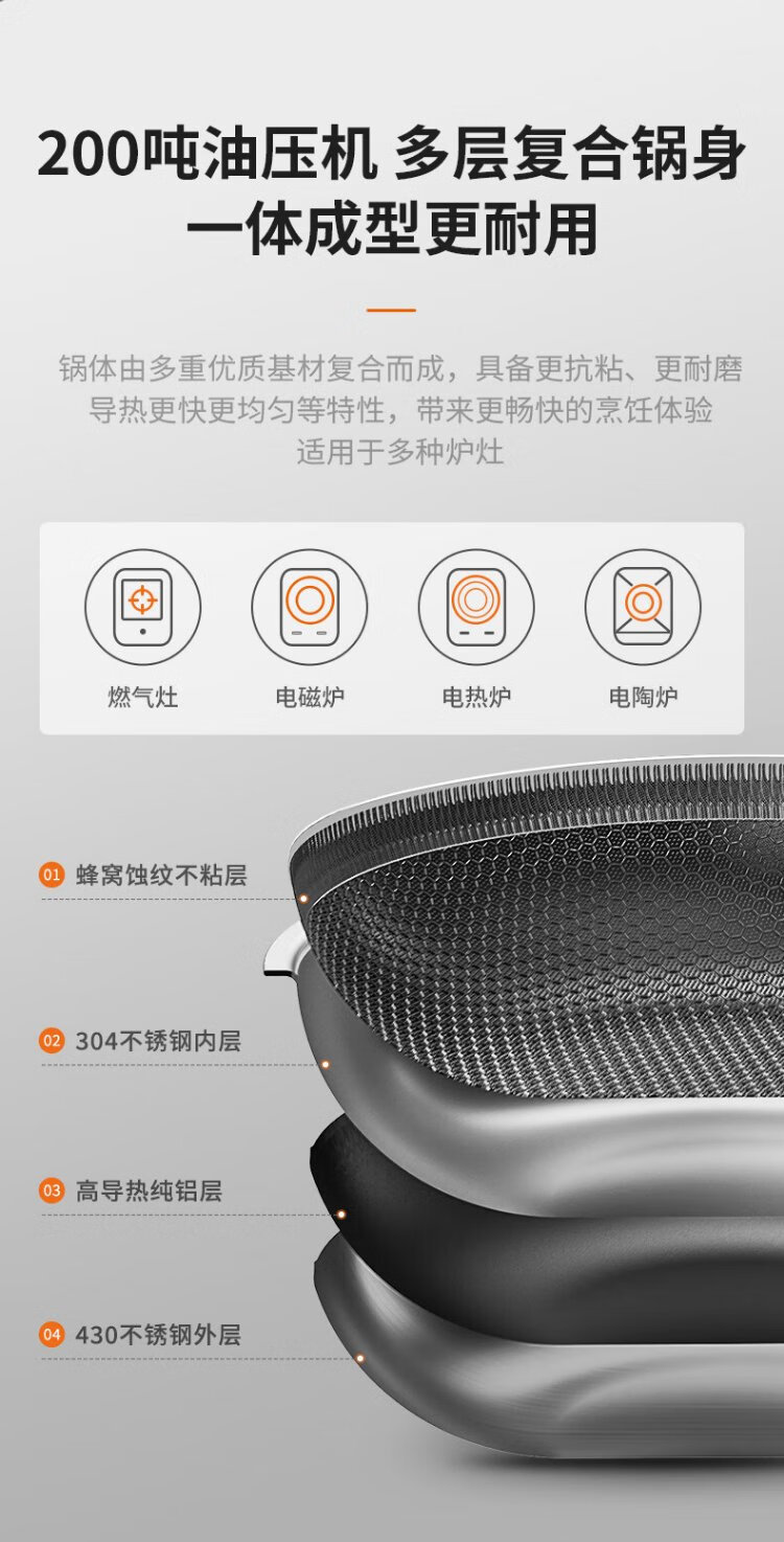 Joyoung wok 304 stainless steel honeycomb non-stick wok wok flat bottom frying pan household non-stick stove 30cm