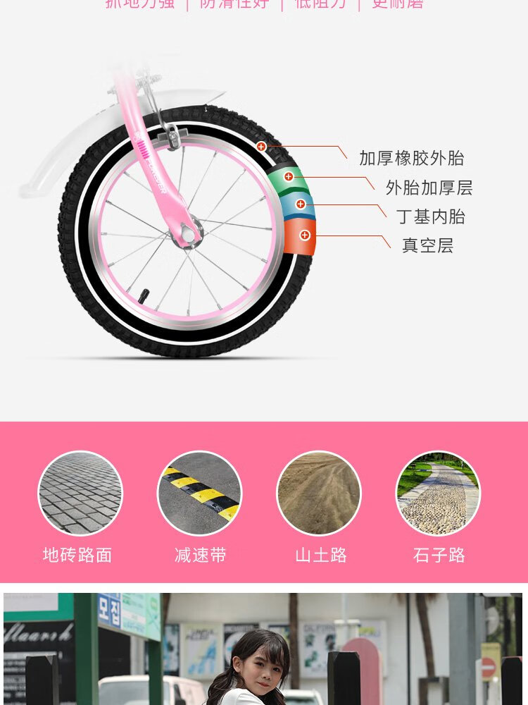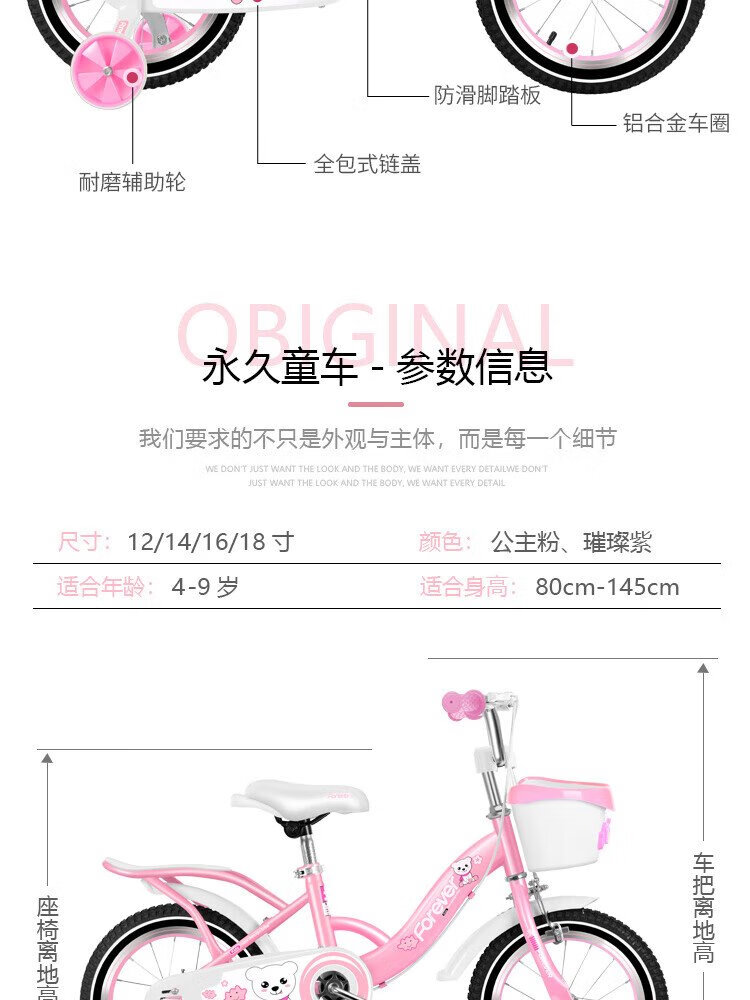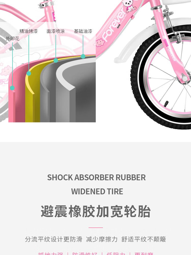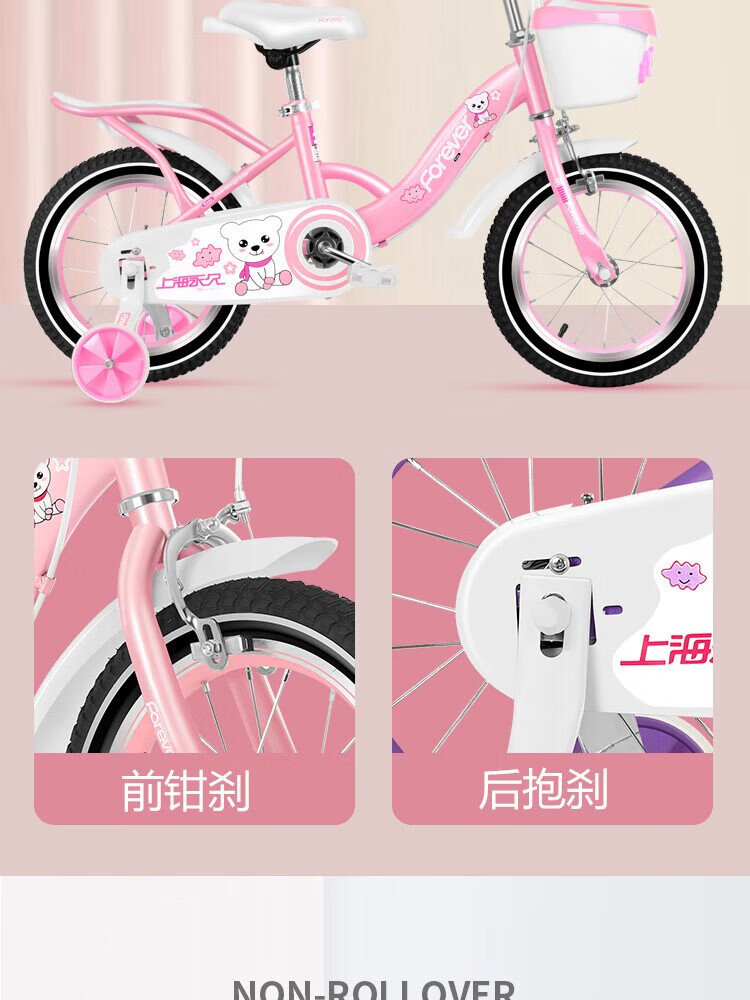 FOREVER (FOREVER) children's bicycle 4-6-8 years old male and female children's bicycle auxiliary wheel 14-inch pink upgraded model