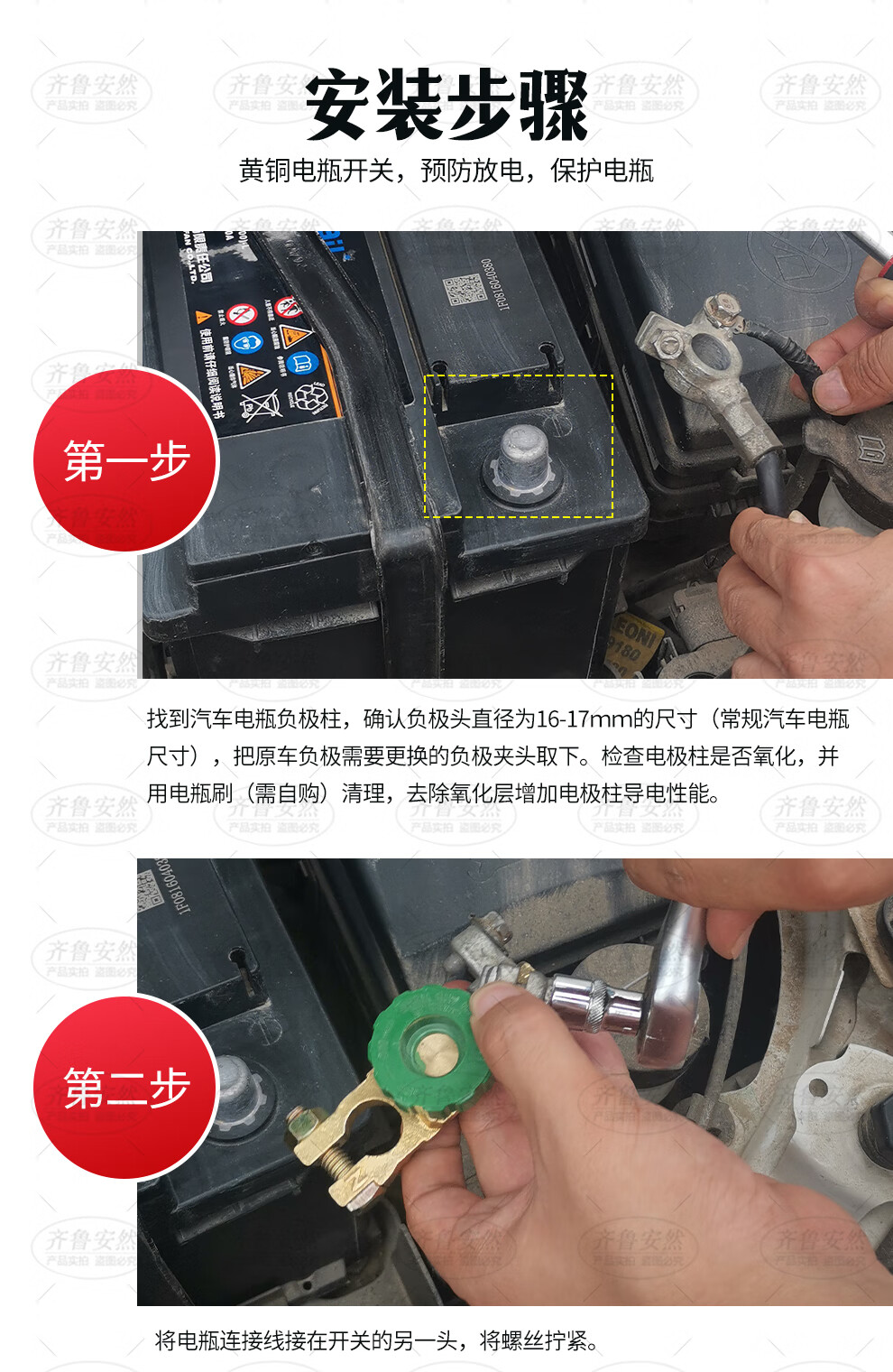 Qilu Anran car battery power-off switch anti-leakage and loss-proof brass terminal pile head 16-17mm