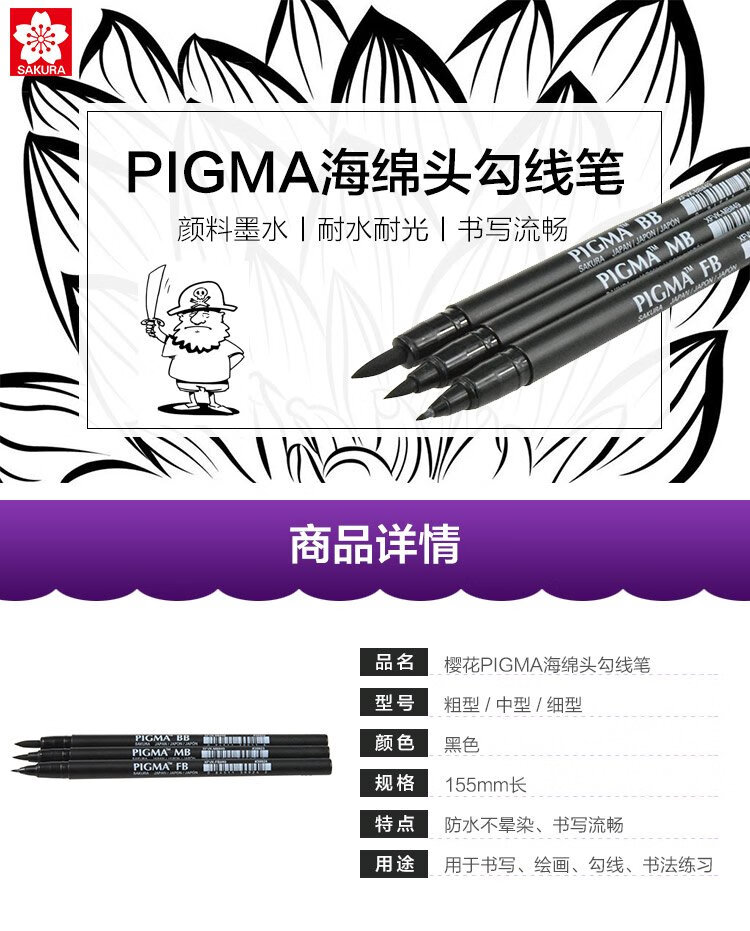 Sakura (SAKURA) soft-tipped beauty pen small (FB small regular script) calligraphy pen practice pen art pen comic hook line hand-painted brush art signature pen popular products