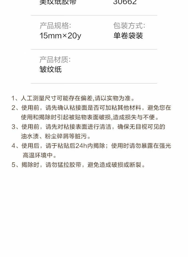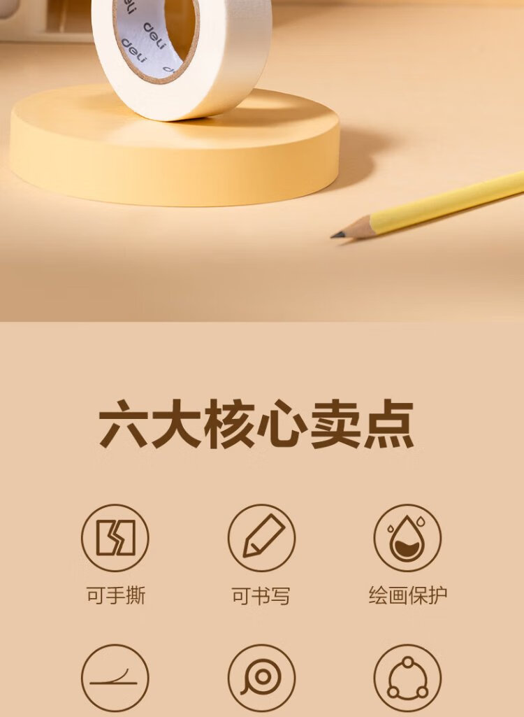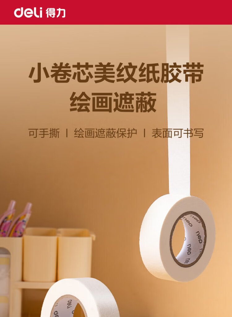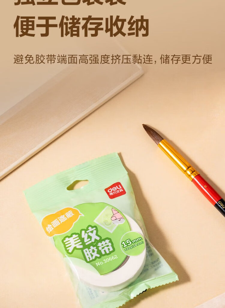 Deli Masking Tape 15mm*20y*145 m Art Color Separation Decoration Masking Seam Film Paint Protection Traceless Sticker Small Roll Core 1 Roll 30662