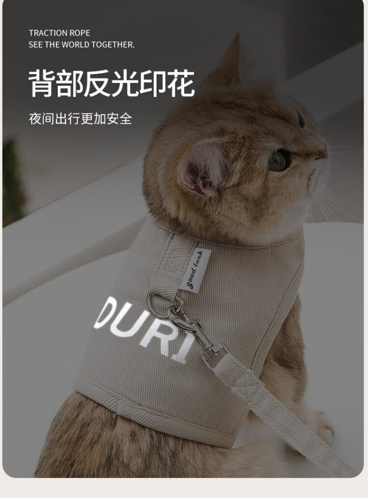 Huanpet.com cat traction rope cat rope pet anti-breakaway adjustable elastic vest type special walking cat rope outing supplies
