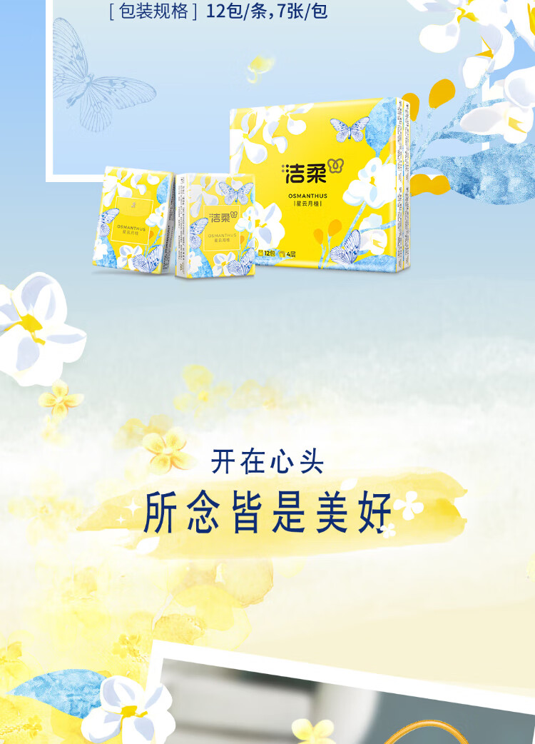 Jierou handkerchief paper Nebula Laurel 4 layers 7 pieces * 12 pack tissue paper pocket garden facial tissue portable high-end fragrance