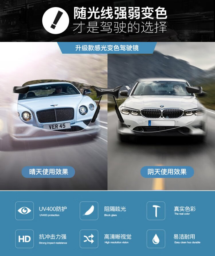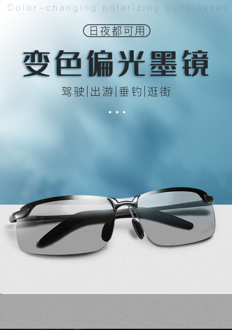 Boliliangpin polarizer photochromic sunglasses male driver driving goggles fishing sunglasses day and night dual-use driving glasses