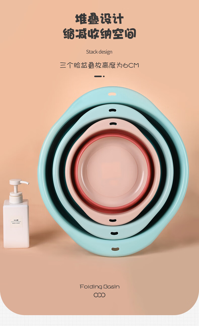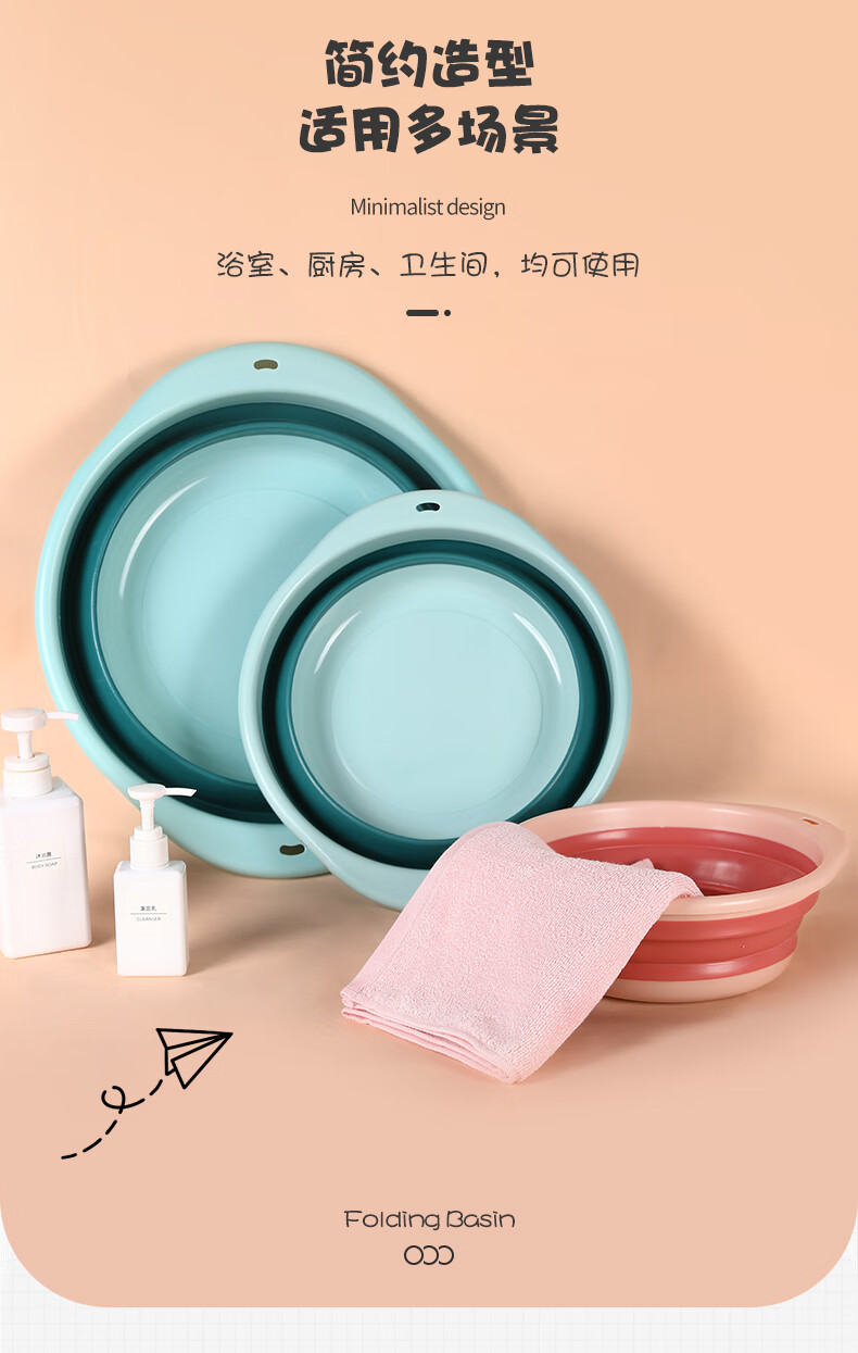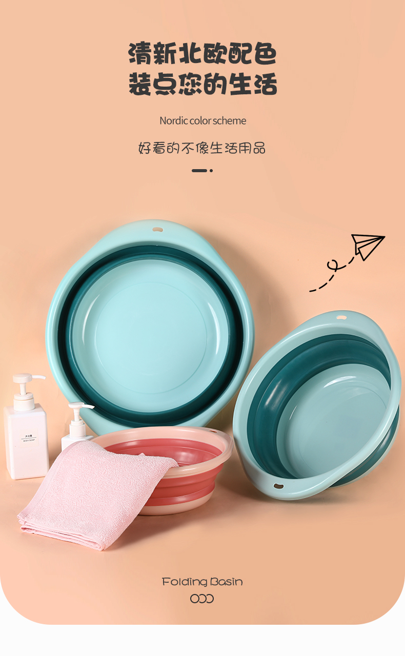 Grace Foldable Washbasin Home Portable Student Dormitory Laundry Basin Travel Plastic Basin Medium Size